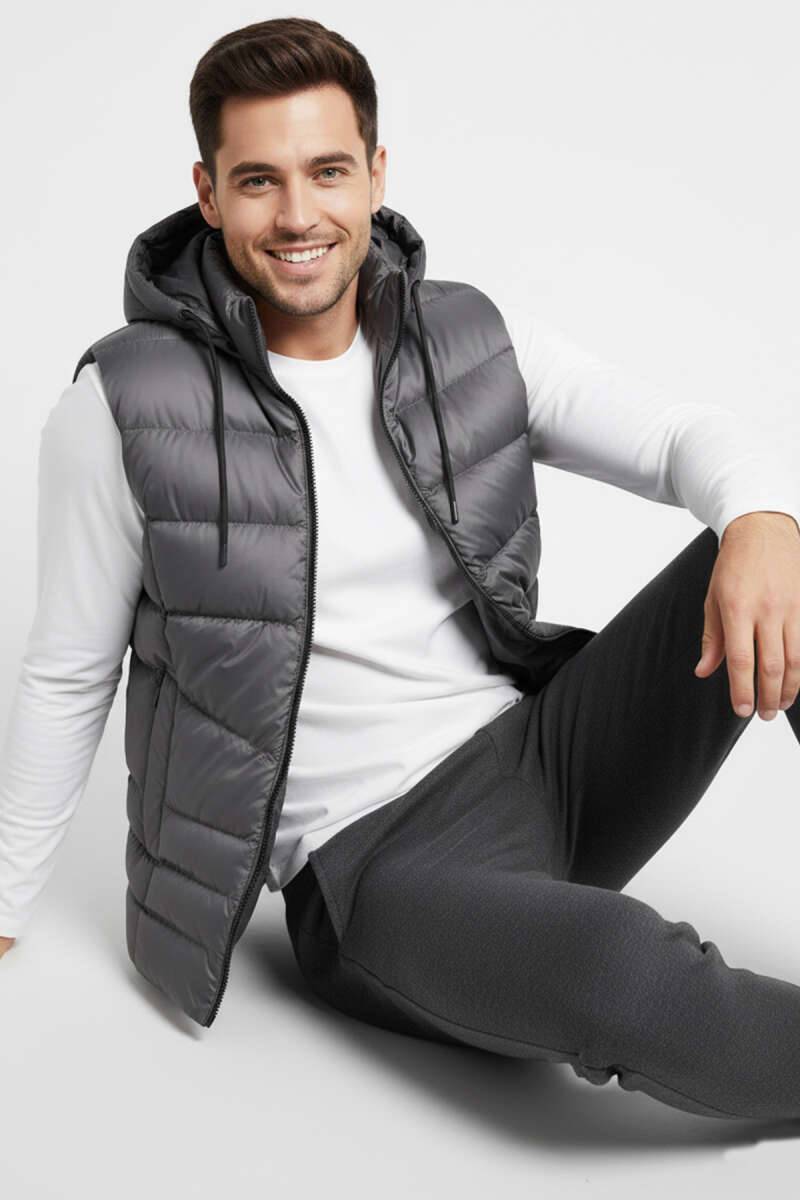 Kapüşonlu Şişme Yelek Erkek Siyah