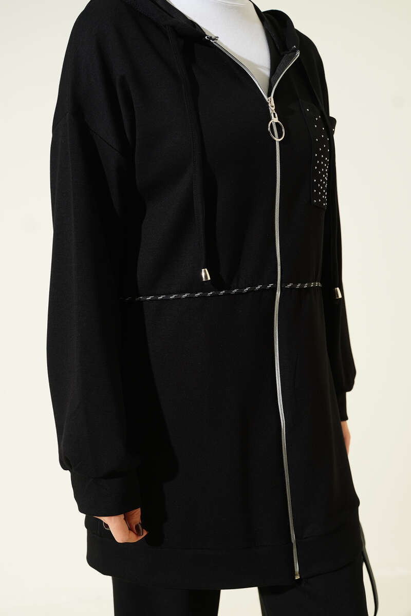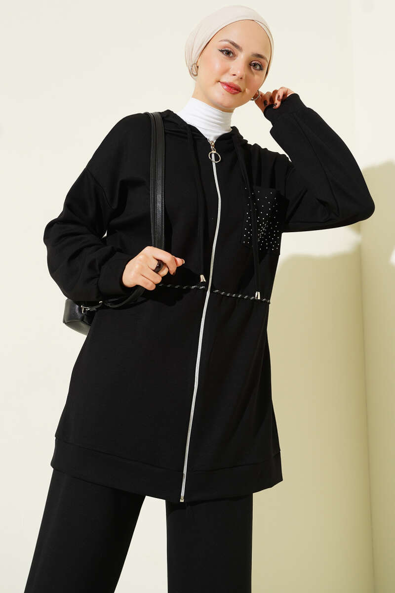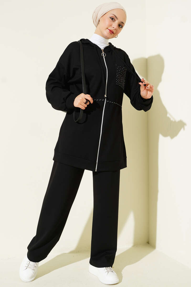 Kapüşonlu Taş Detay Cepli Loyşa İkili Takım Lacivert