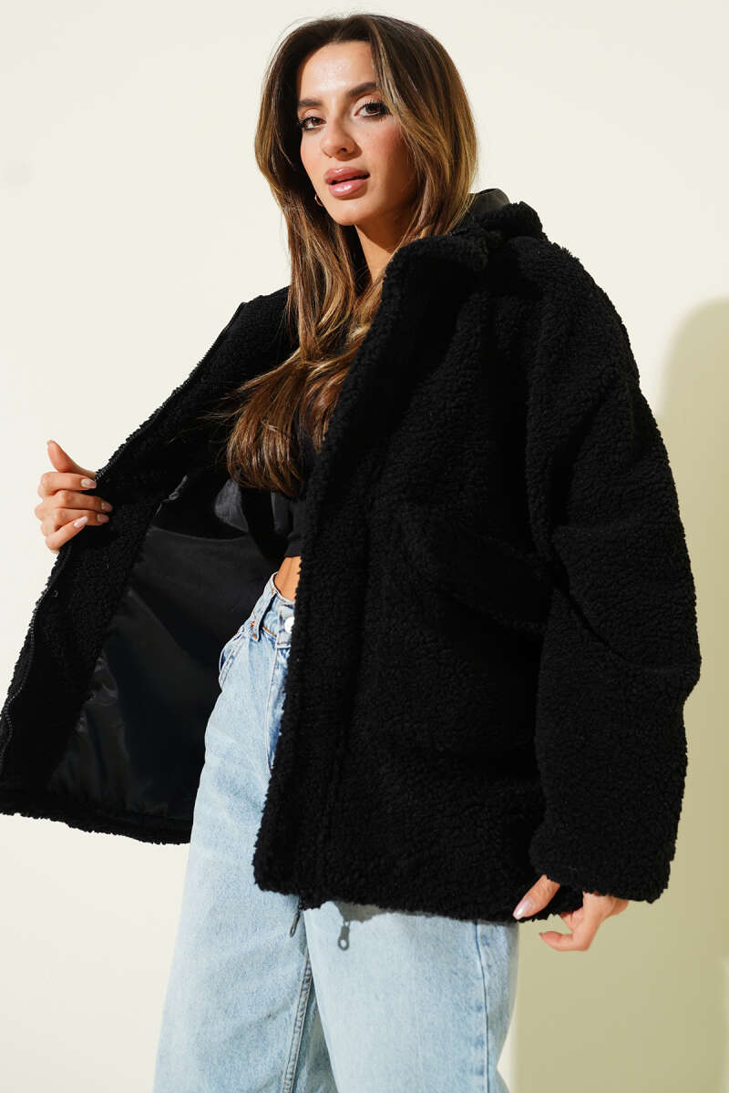 Omuz Apoletli Düğme Detaylı Kaşe Kaban Siyah
