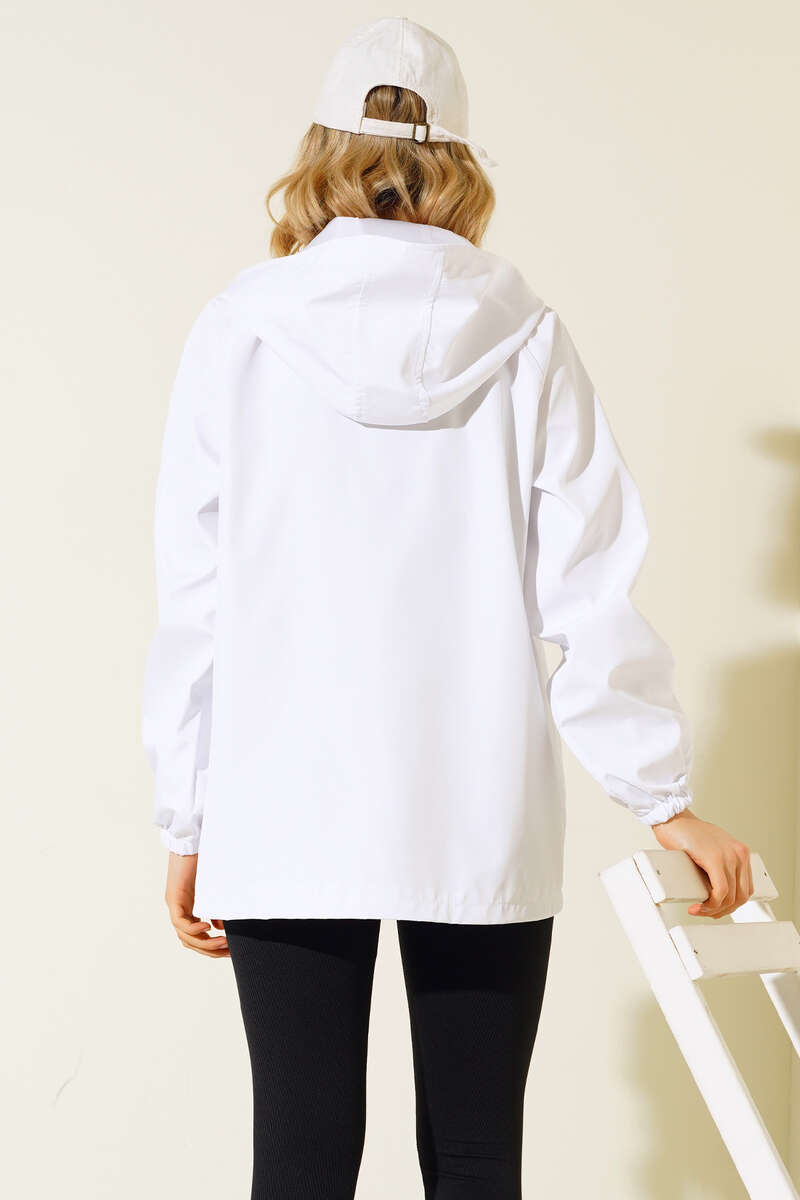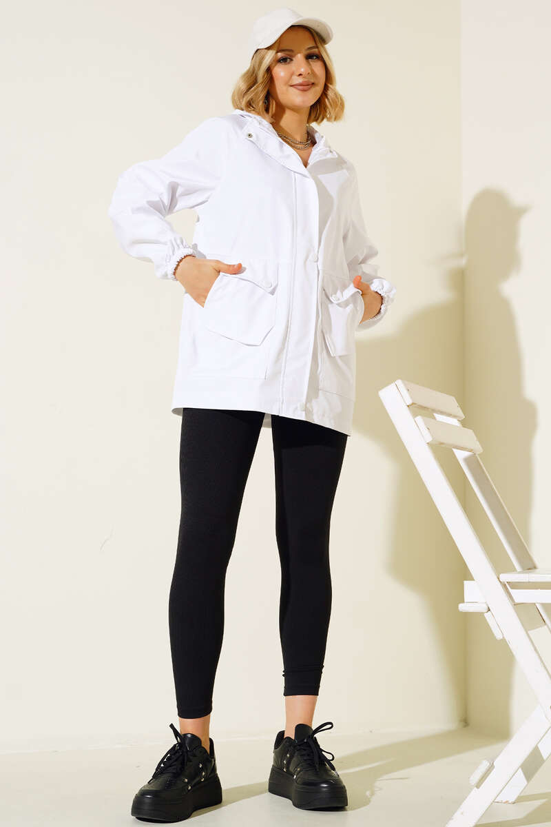 Kapüşonlu Uzun Mont Beyaz