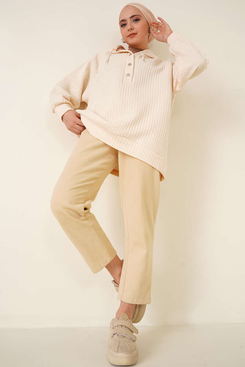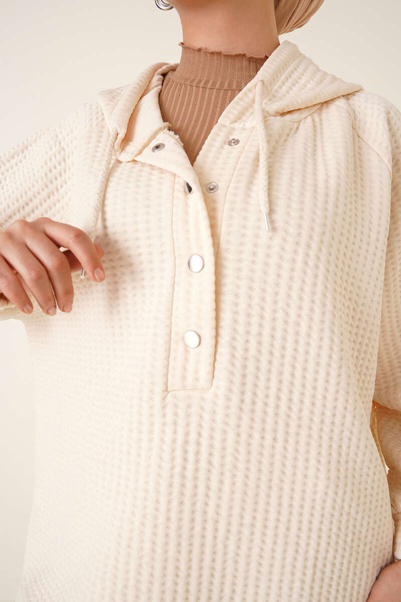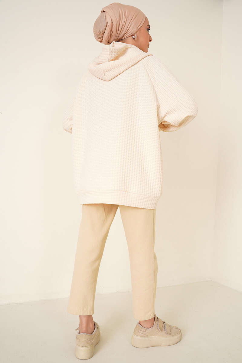 Kapüşonlu Waffle Kumaş Tunik Bej