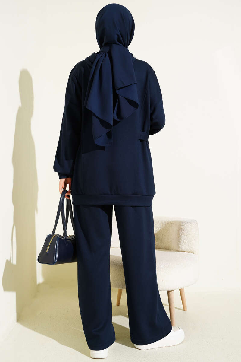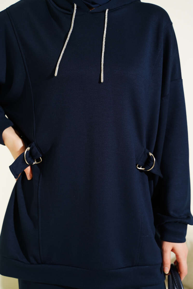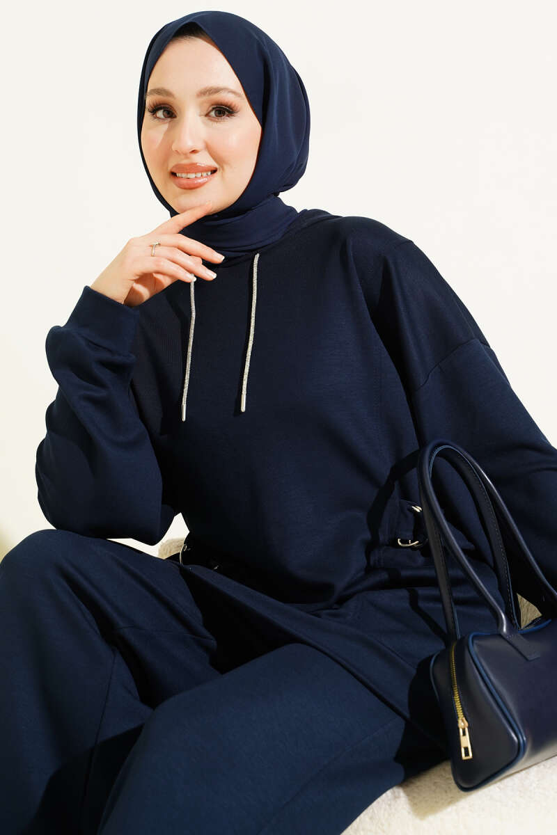 Kapüşonlu Yan Kuşaklı Loyşa İkili Takım Lacivert