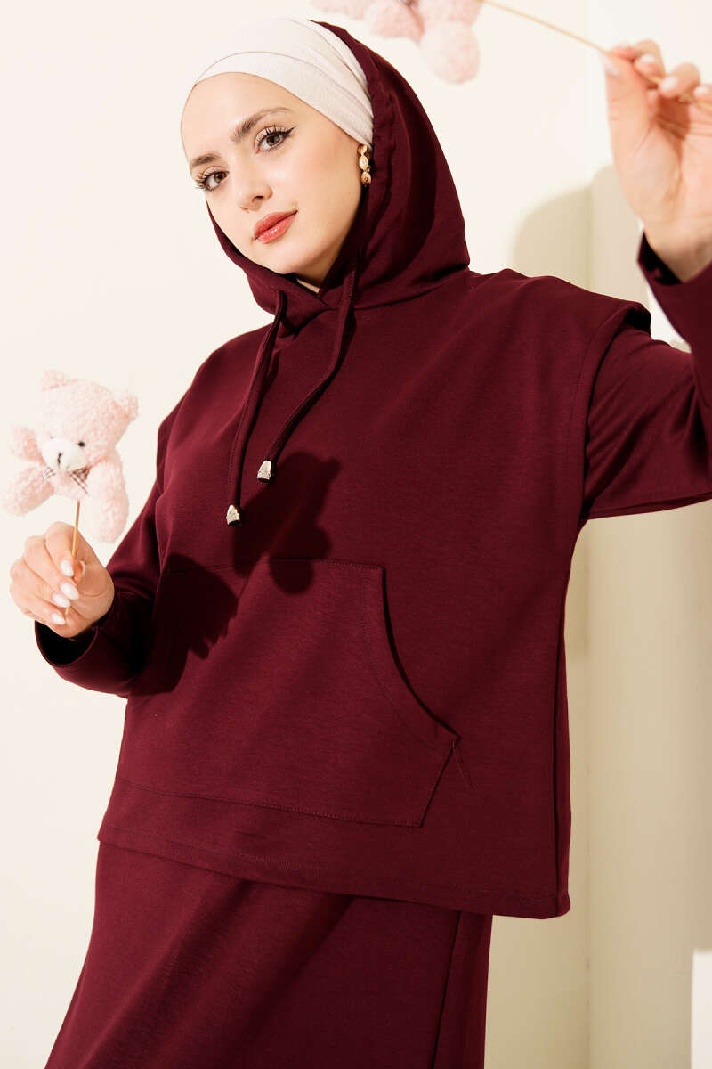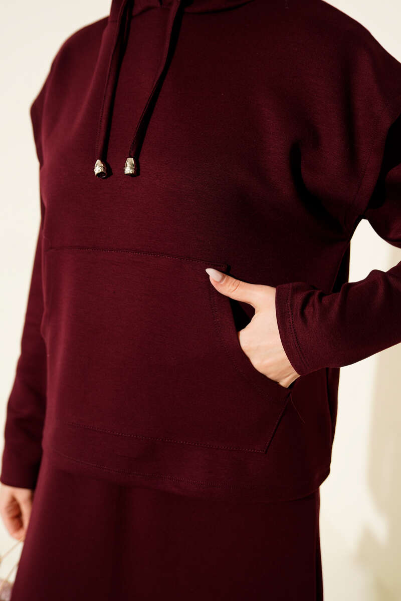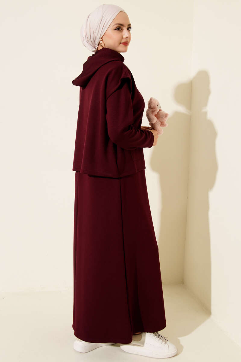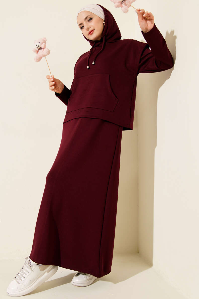 Duble Kol İp Kuşaklı Loyşa Elbise Bordo