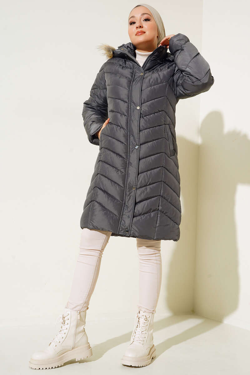 Yeni sezon kapüşonu kürklü şişme montumuz boydan fermuarlıdır. Kapüşonu fermuarlıdır ve takılıp çıkarılabilir. Montumuzun önü çıtçıt düğmeli olup cepleri kullanışlıdır. Soğuk havalarda içinizi ısıtmaya hazır.