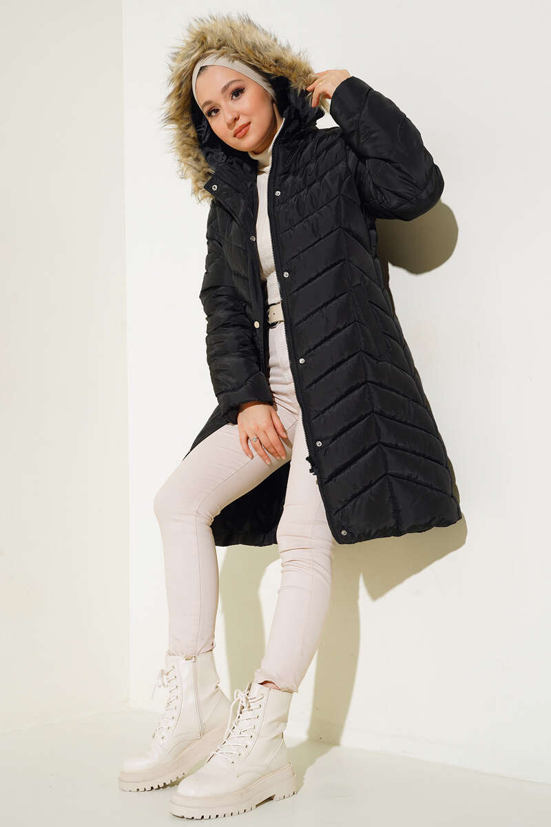 Yeni sezon kapüşonu kürklü şişme montumuz boydan fermuarlıdır. Kapüşonu fermuarlıdır ve takılıp çıkarılabilir. Montumuzun önü çıtçıt düğmeli olup cepleri kullanışlıdır. Soğuk havalarda içinizi ısıtmaya hazır.
