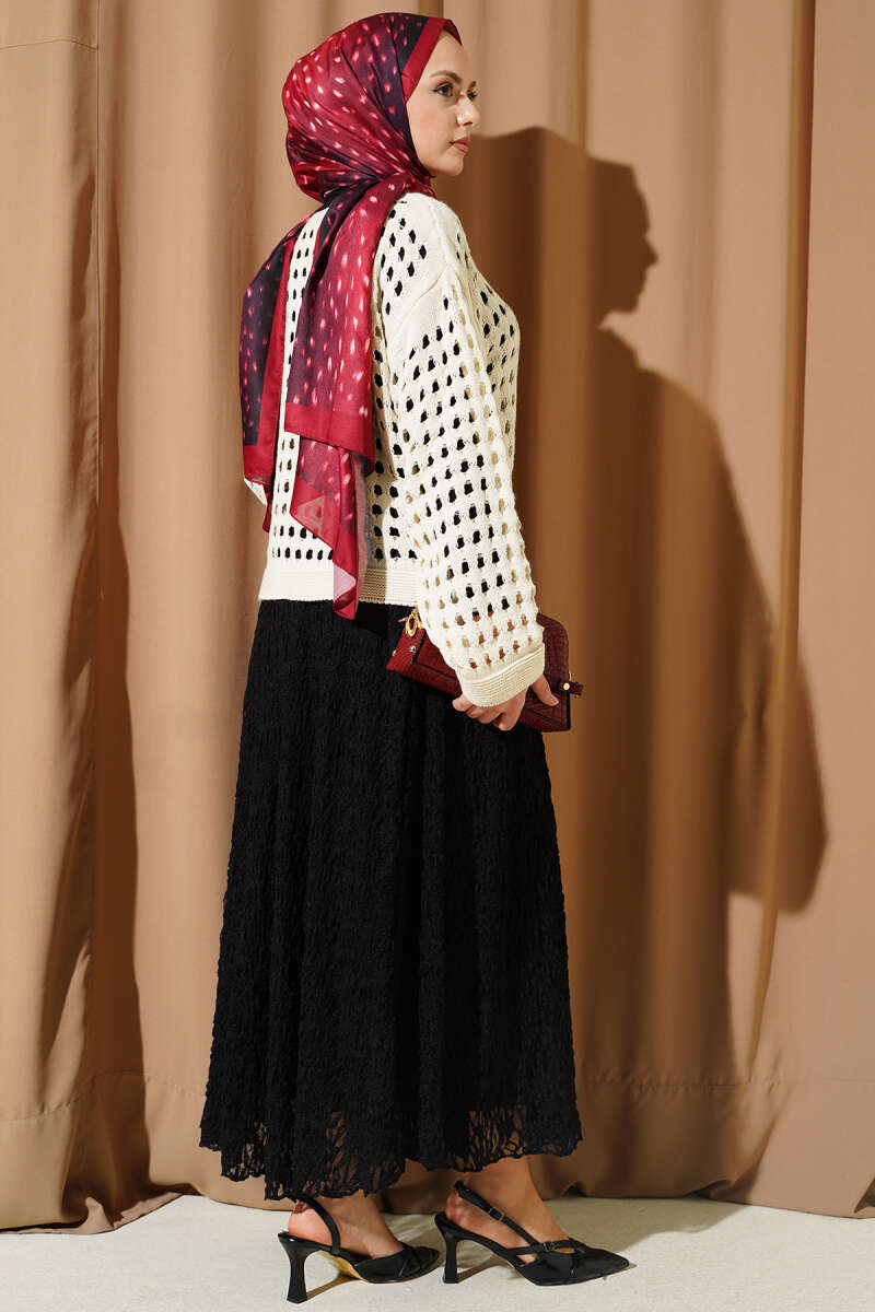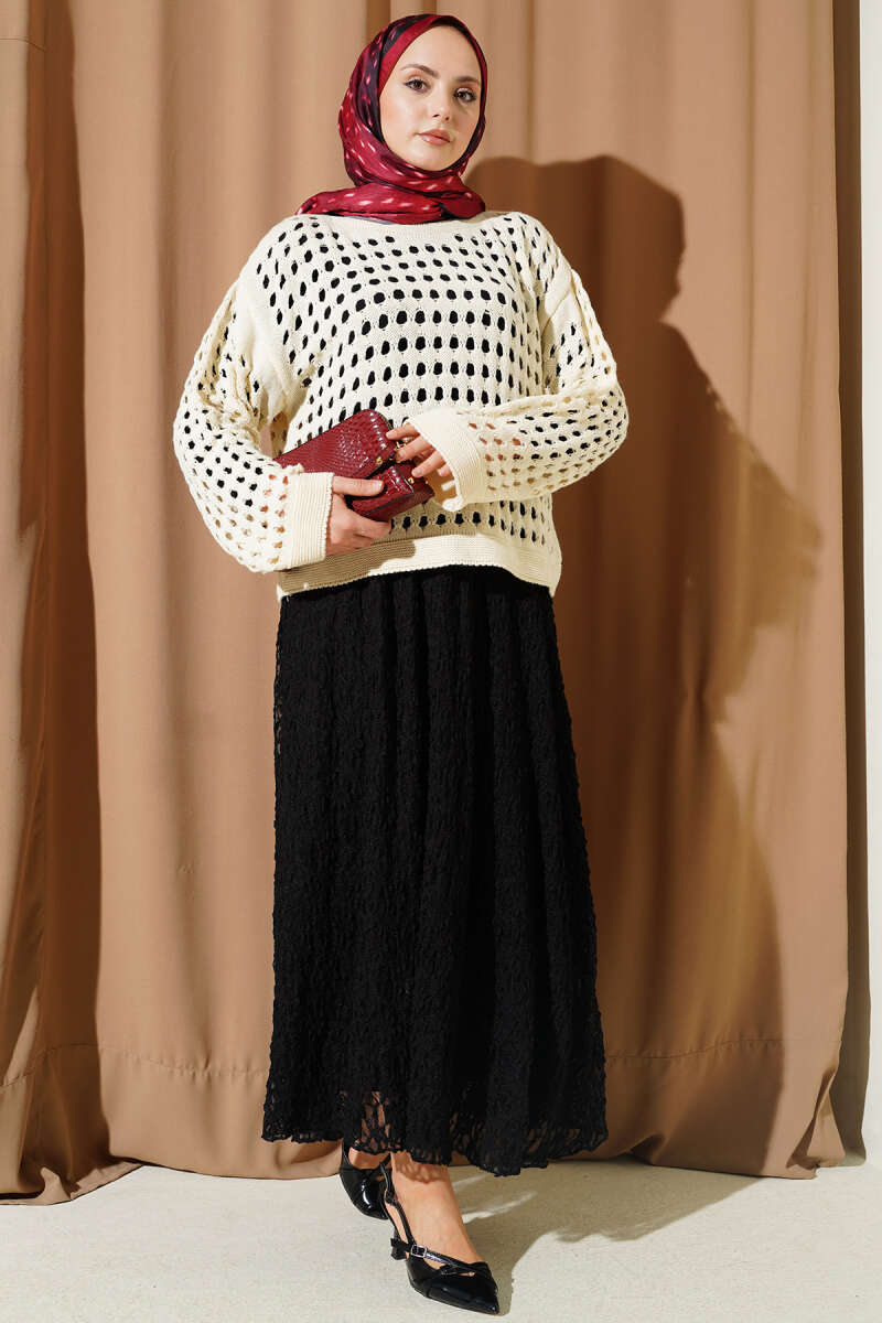 Kare Yaka Uzun Kol Sandy Crop Siyah
