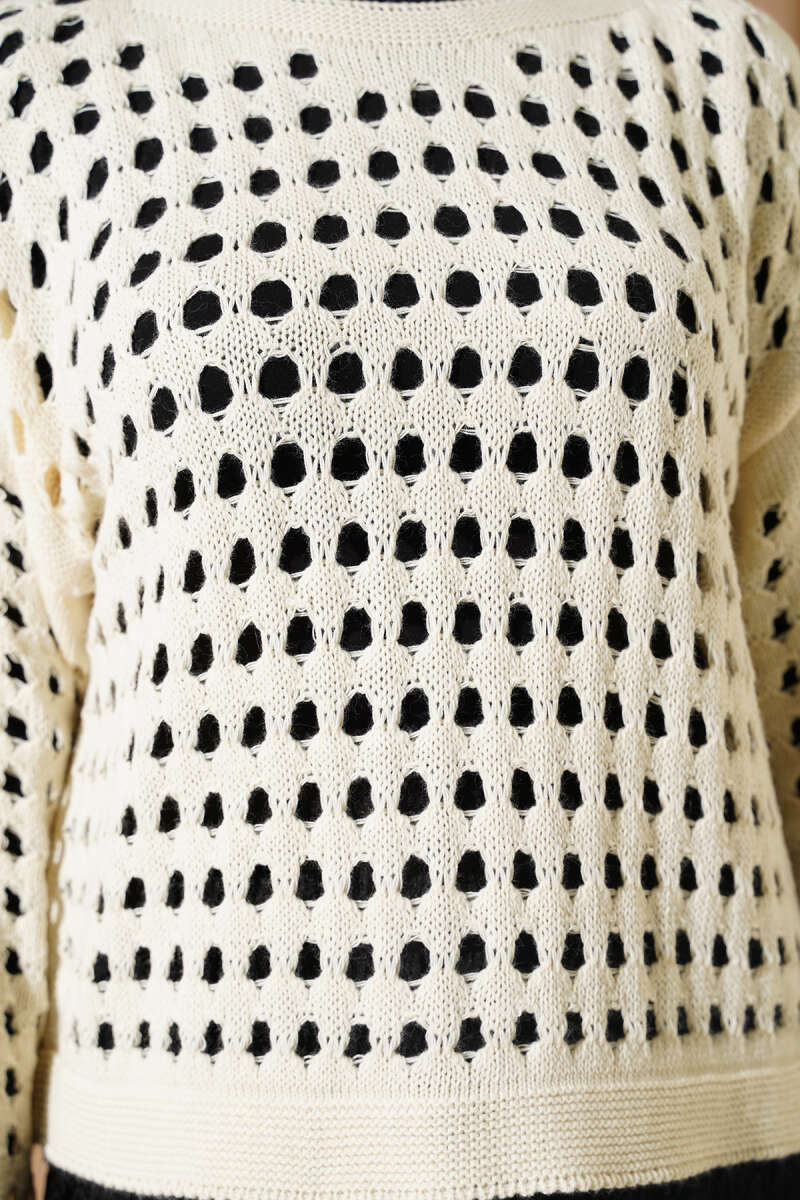 Kare Yaka Uzun Kol Sandy Crop Beyaz