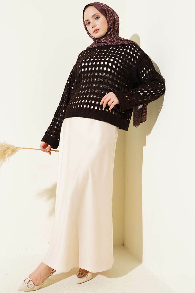 Kare Yaka Uzun Kol Sandy Crop Kahve