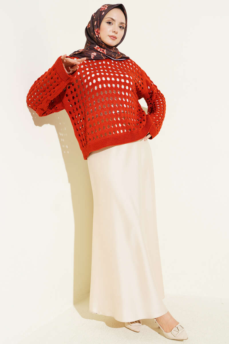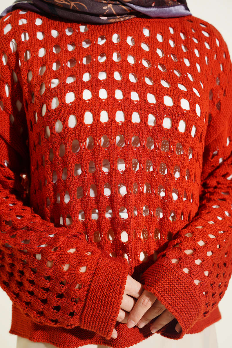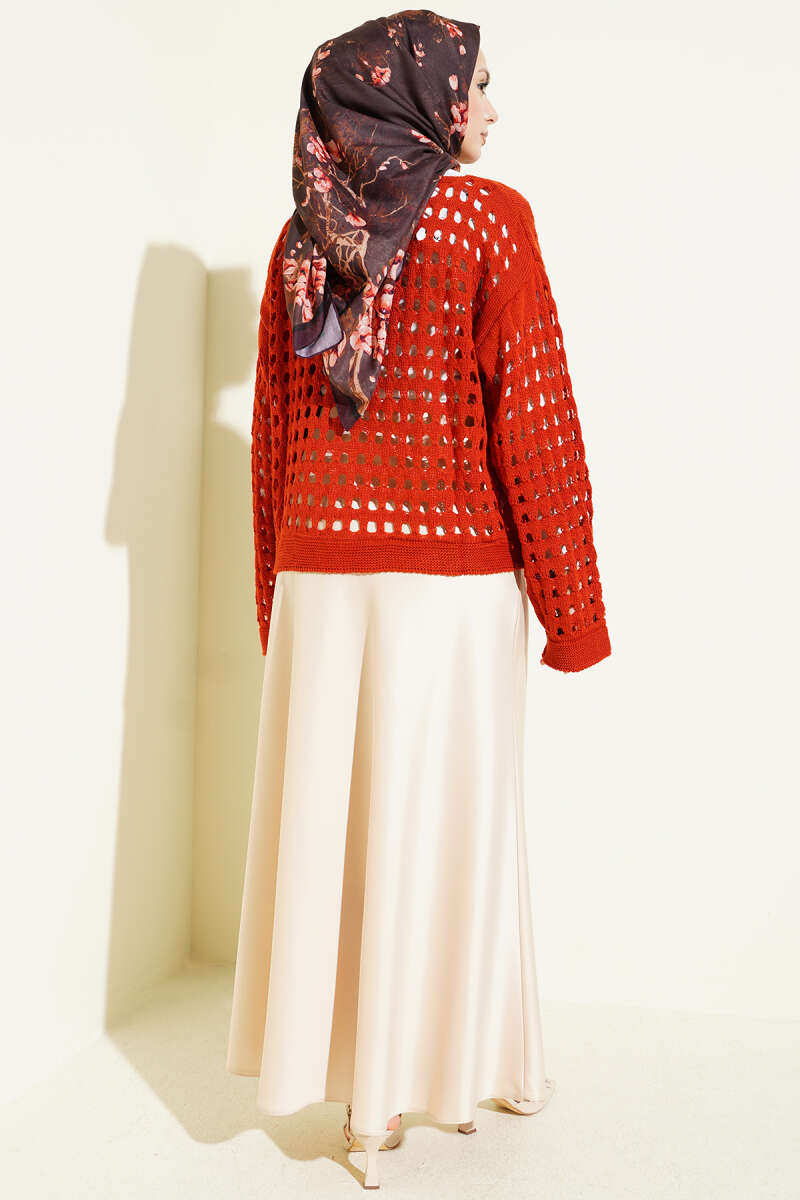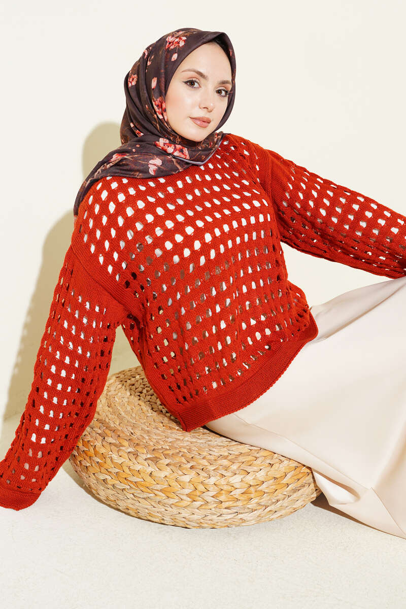 Kare Ajurlu Triko Kazak Kiremit