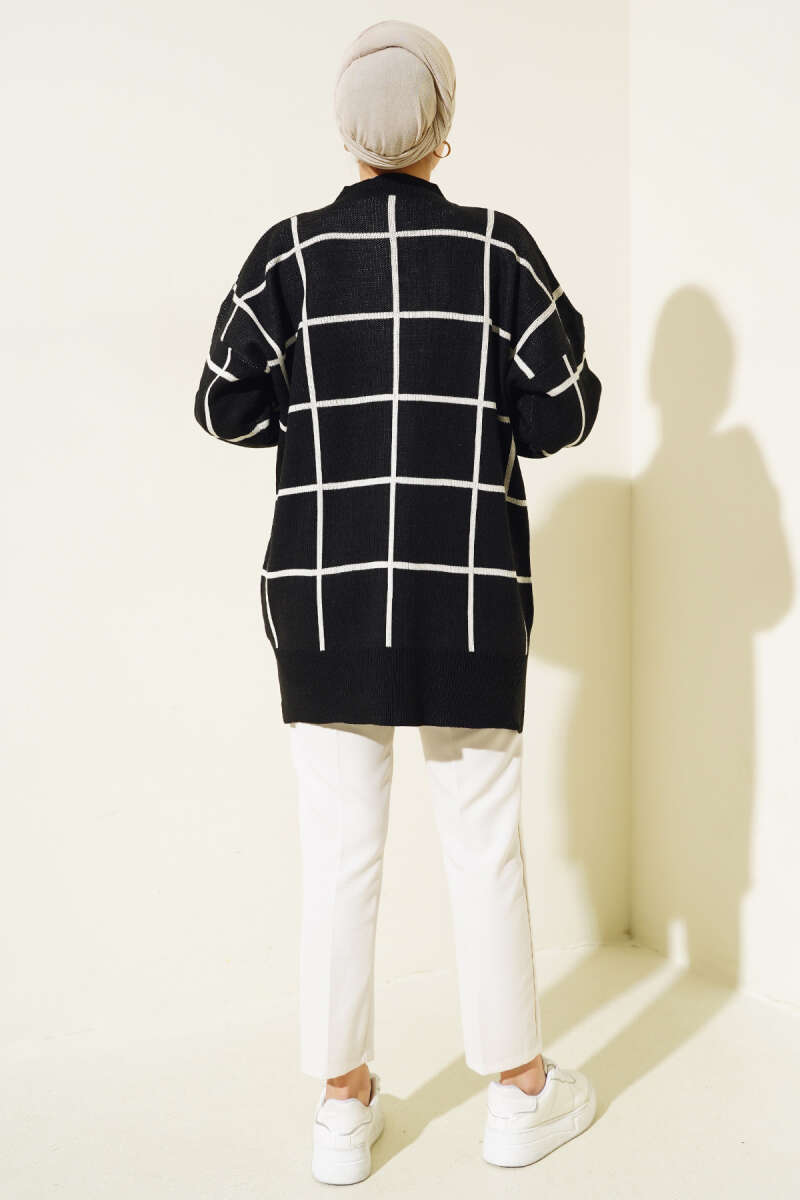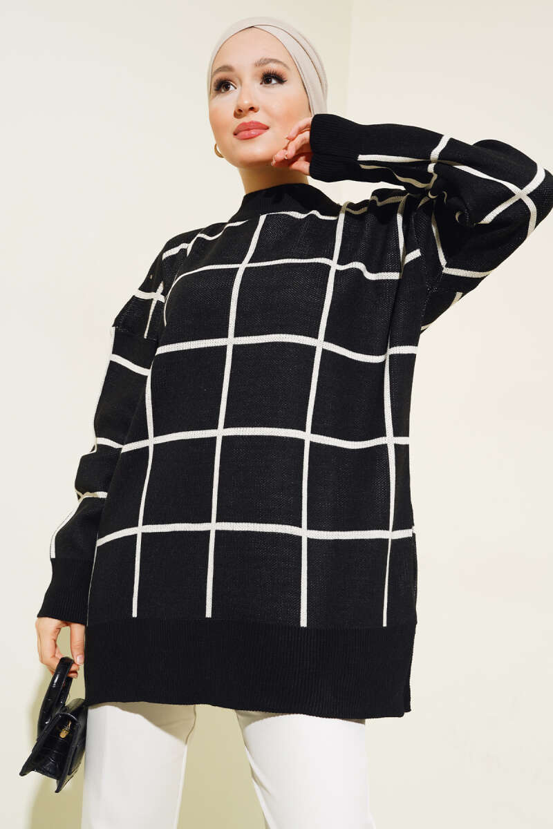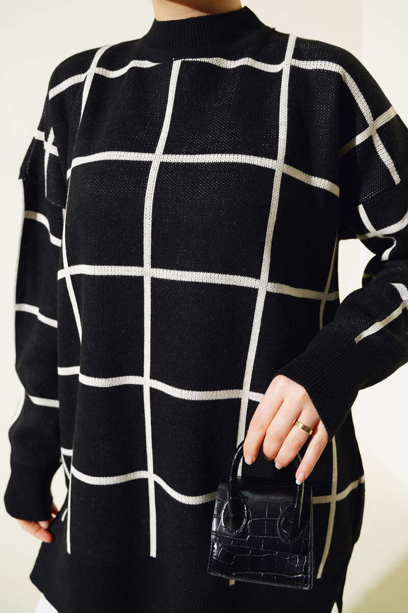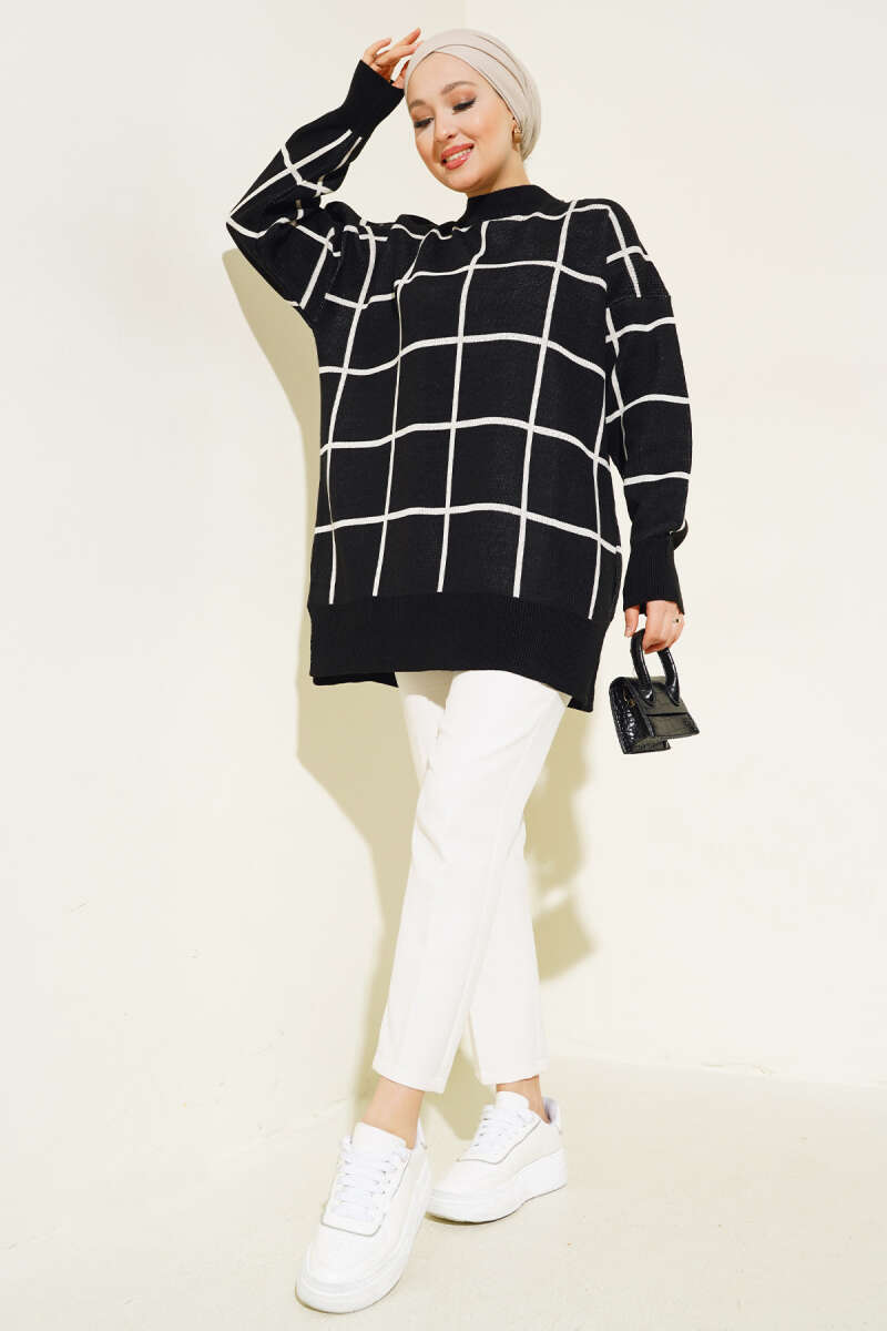 Yatay Çizgi Detaylı Basic Triko Tunik Siyah