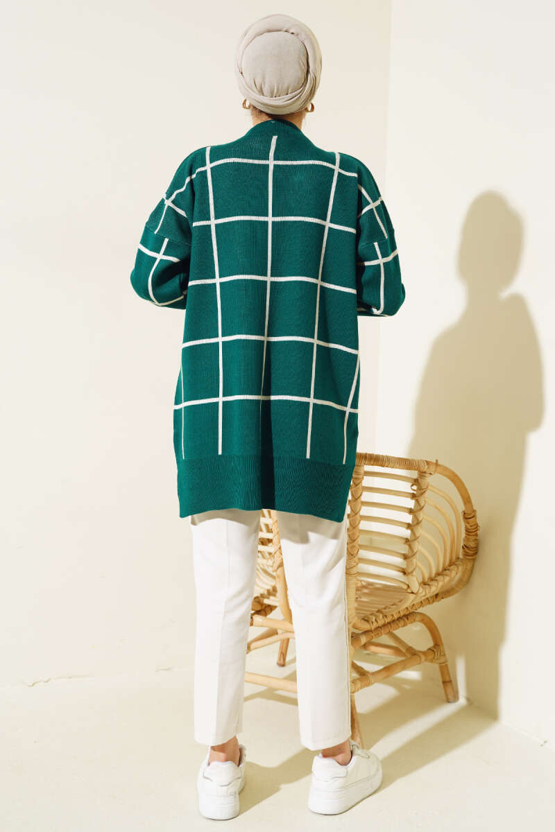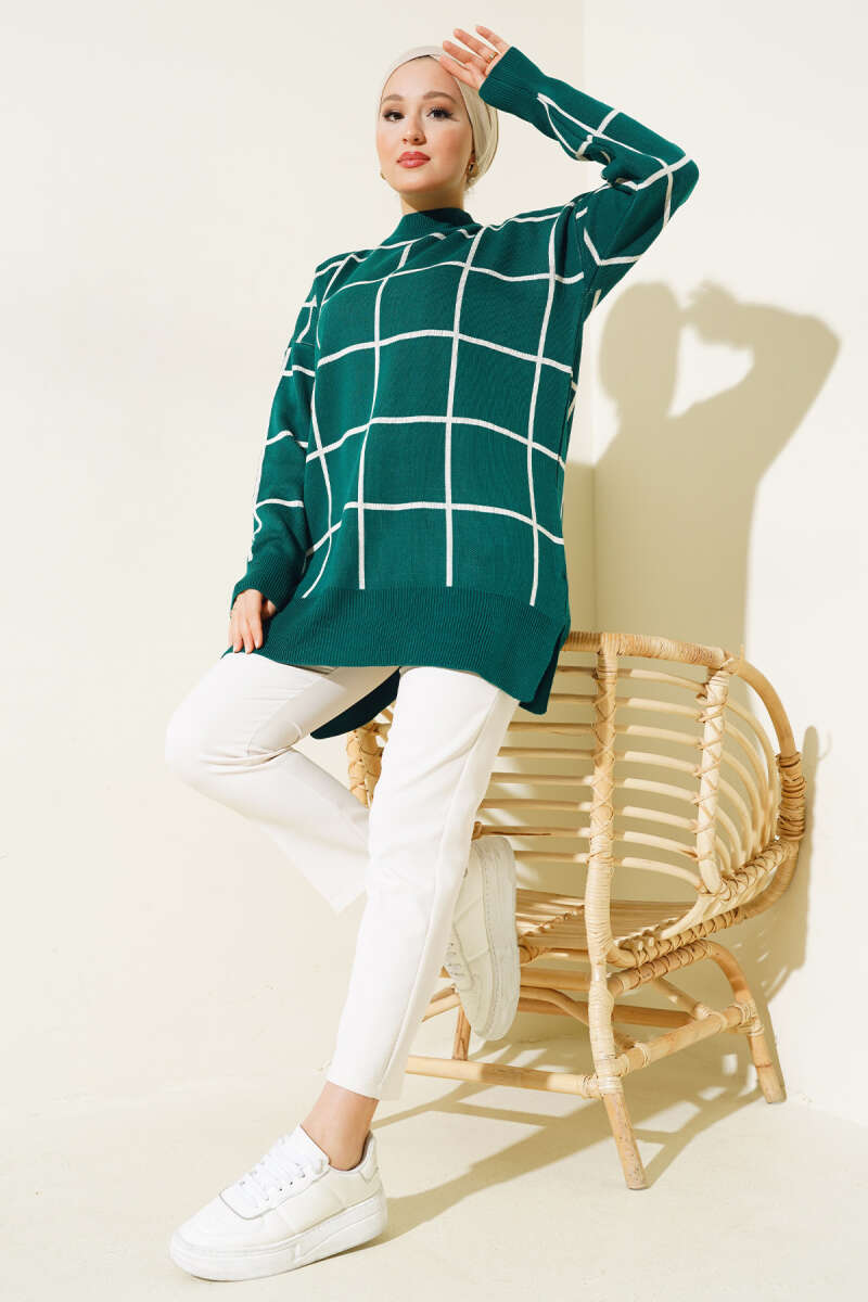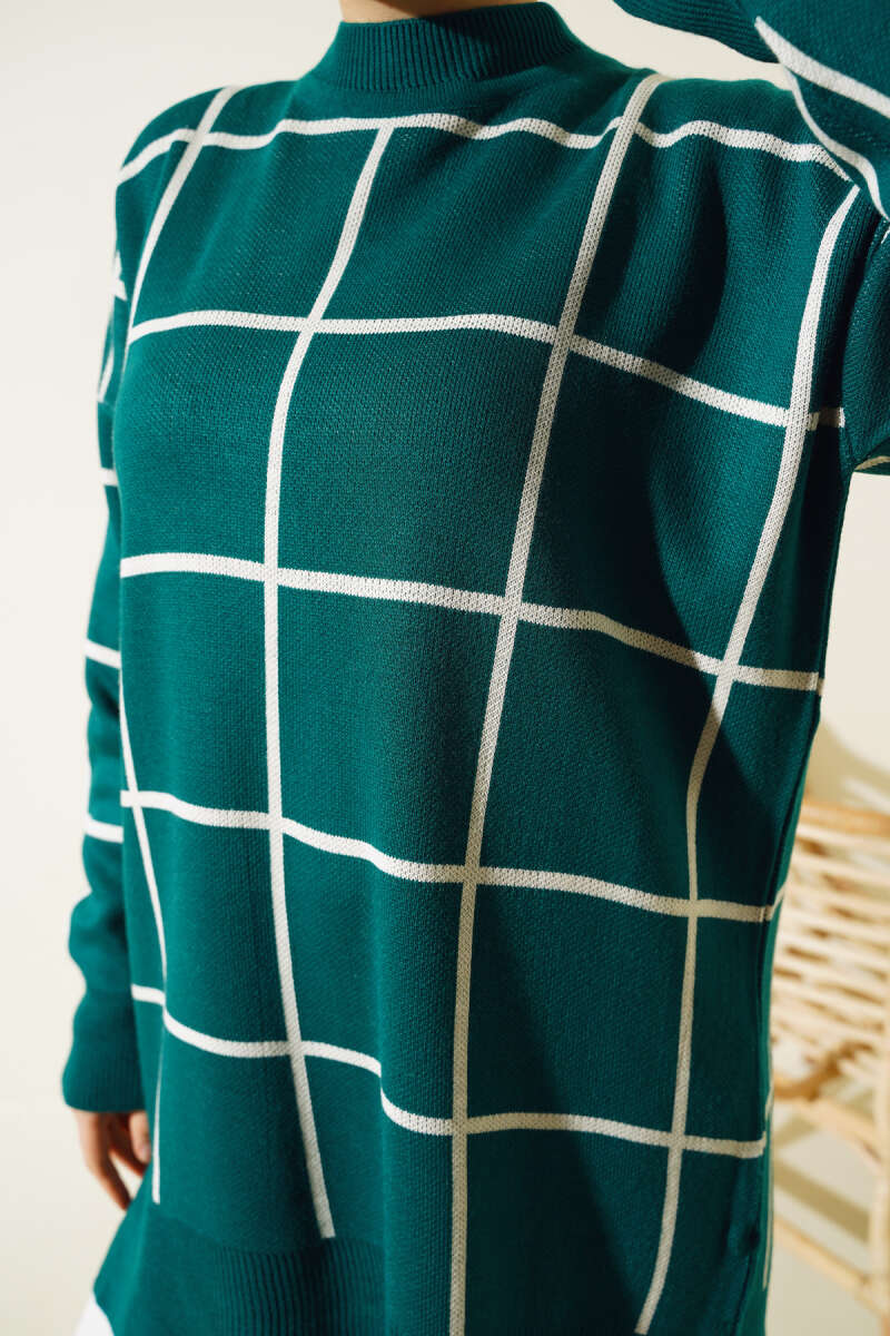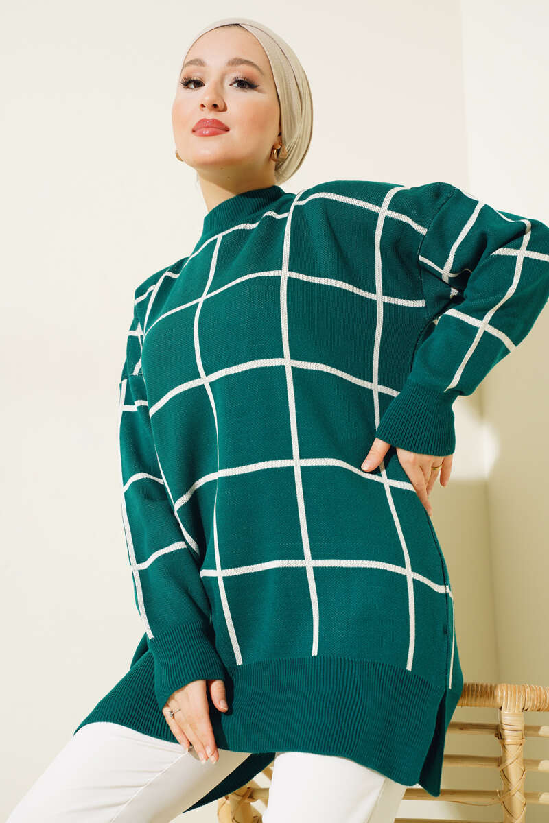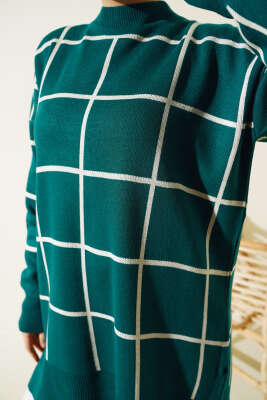 Çizgi Baklava Desen Triko Tunik Yağ Yeşili