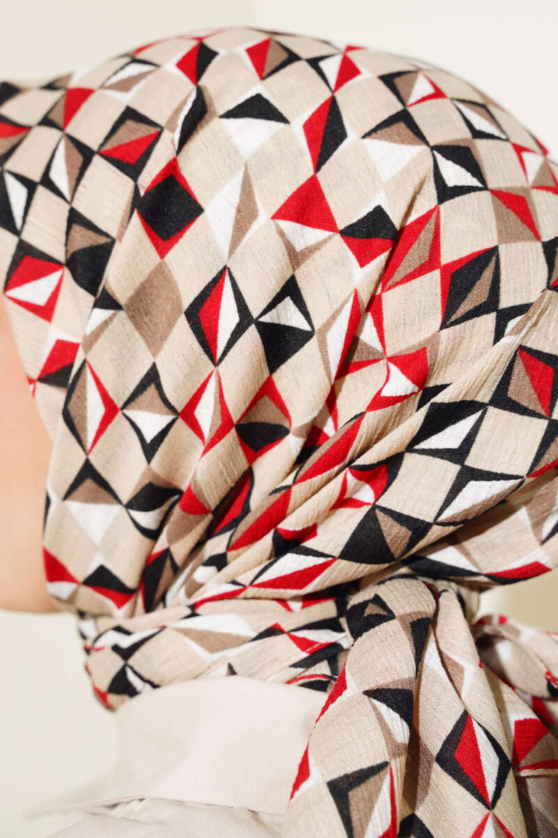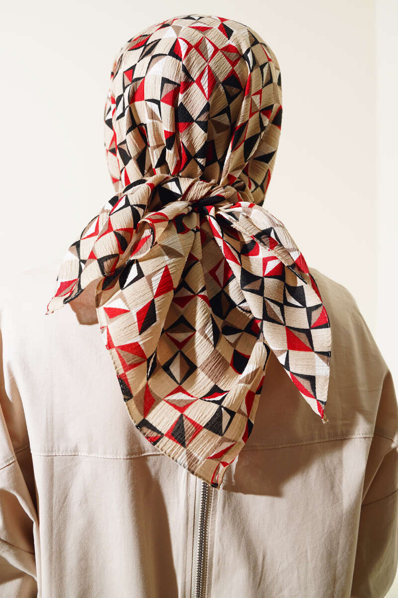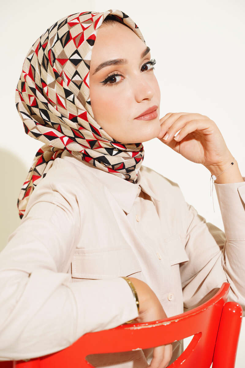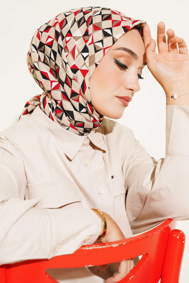 Çizgi Gül Desen Soft Şal Sütlü Kahve