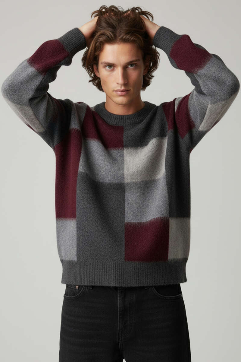 Bukle Örgü Erkek Triko Kazak Burgonya