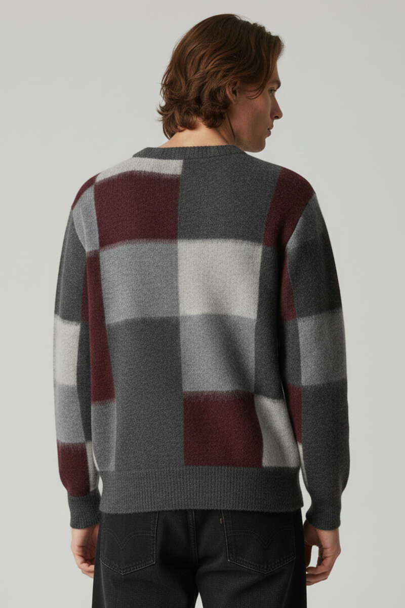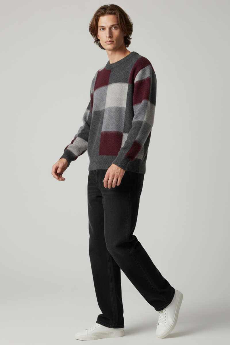 Kare Desen Yumoş Triko Erkek Kazak Siyah