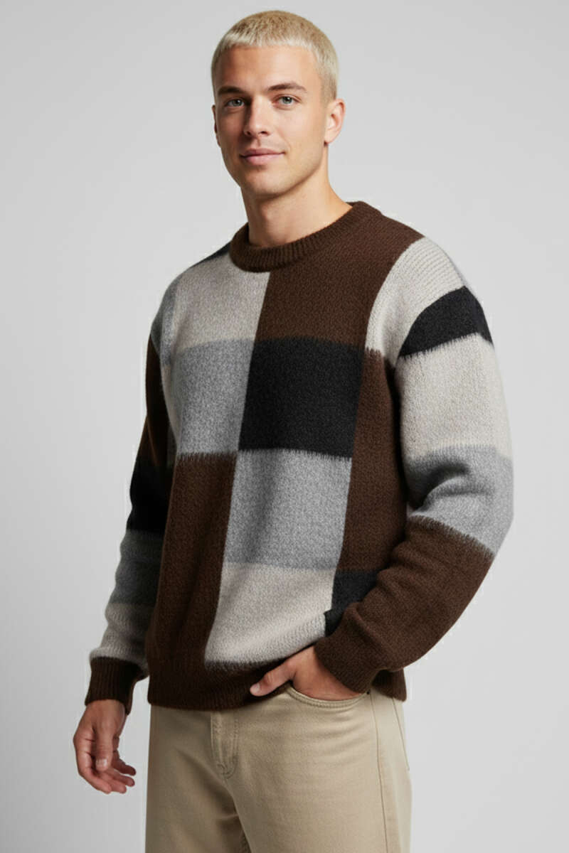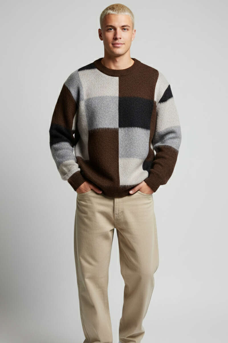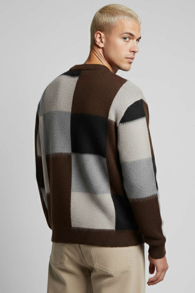Kare Desen Yumoş Triko Erkek Kazak Siyah