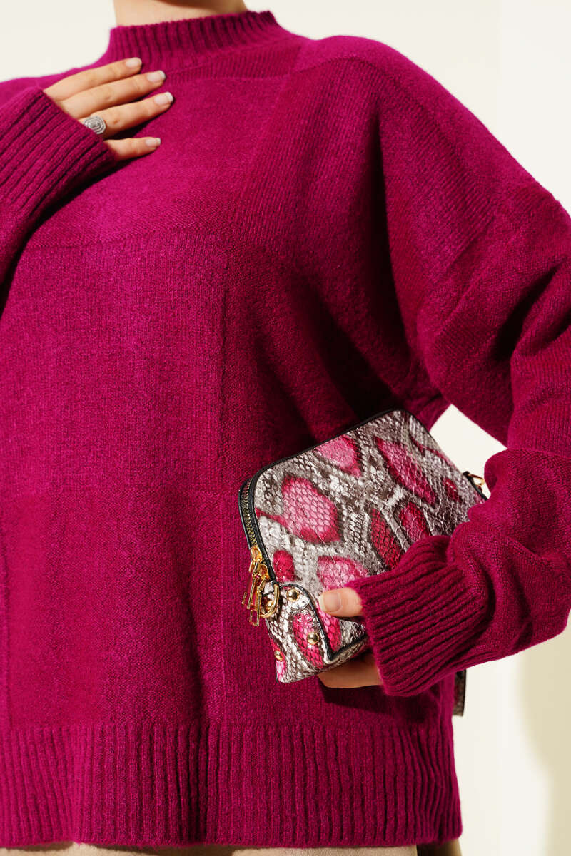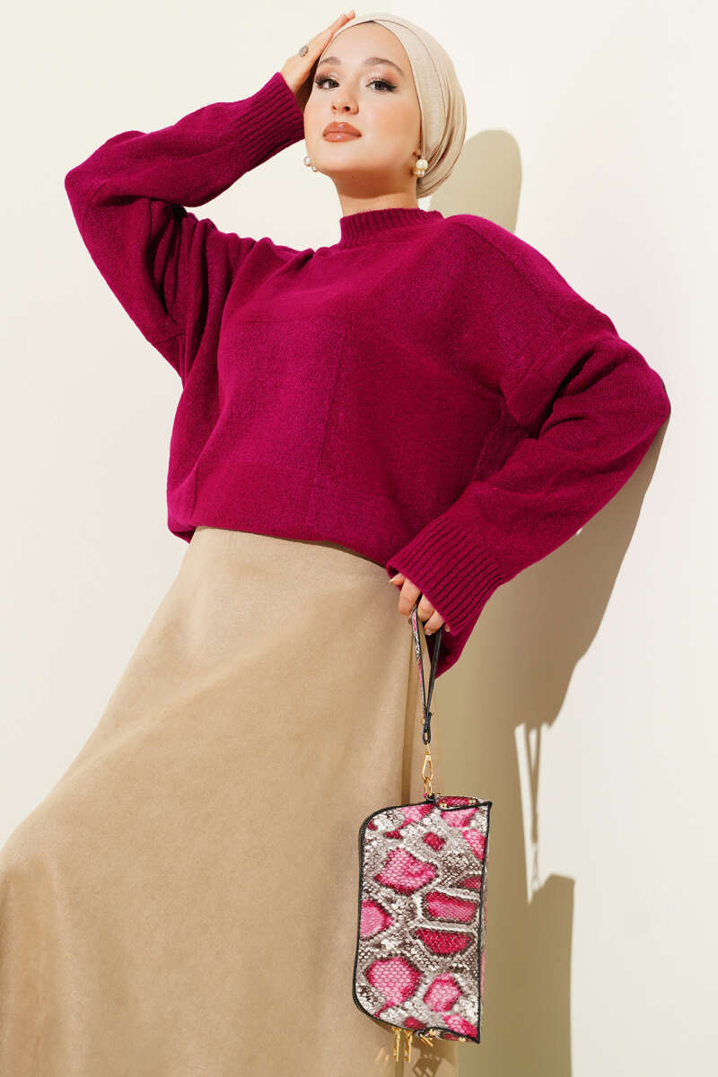 Çiçekli İnci İşlemeli Triko Kazak Bordo