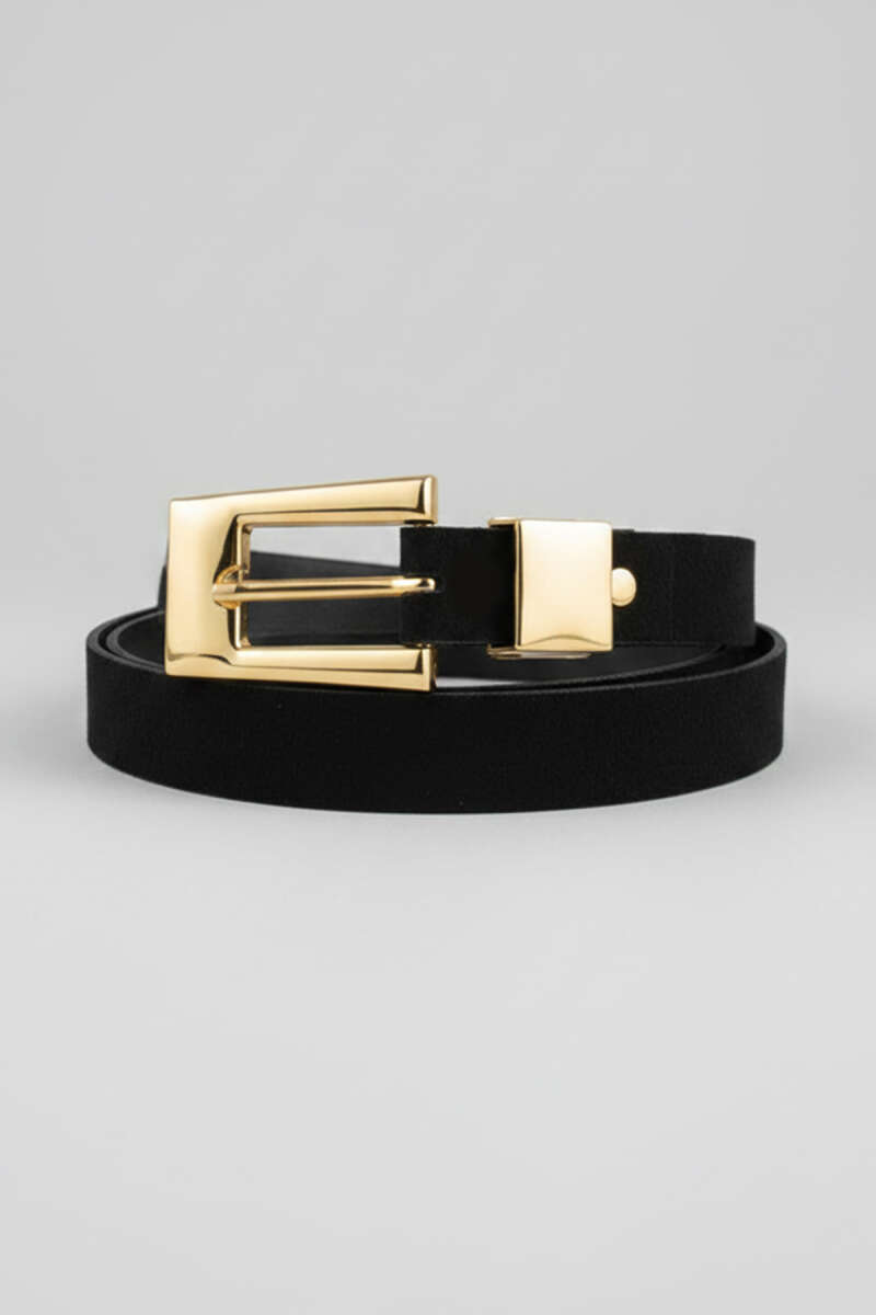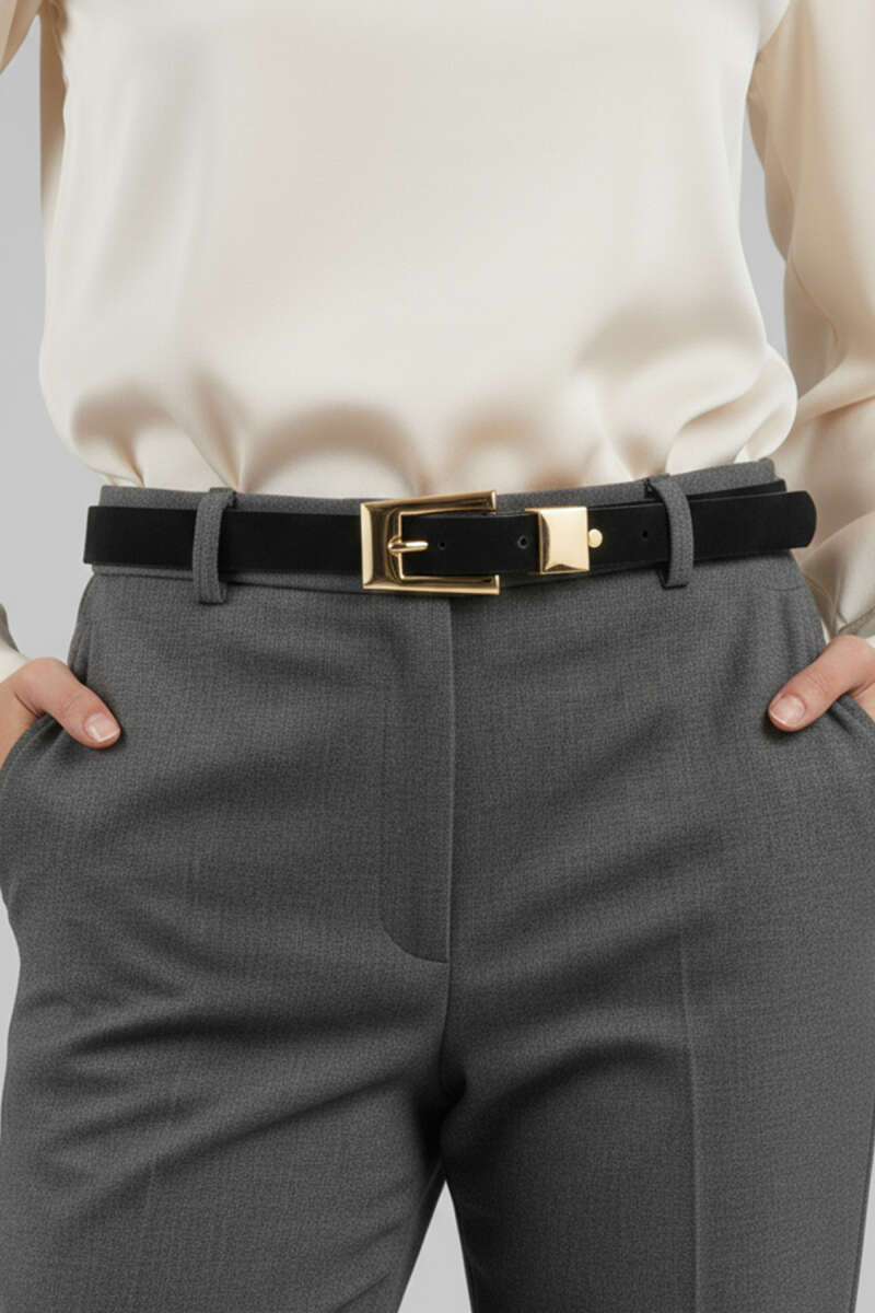 Kare Detaylı Gold Tokalı Süet Kemer Siyah