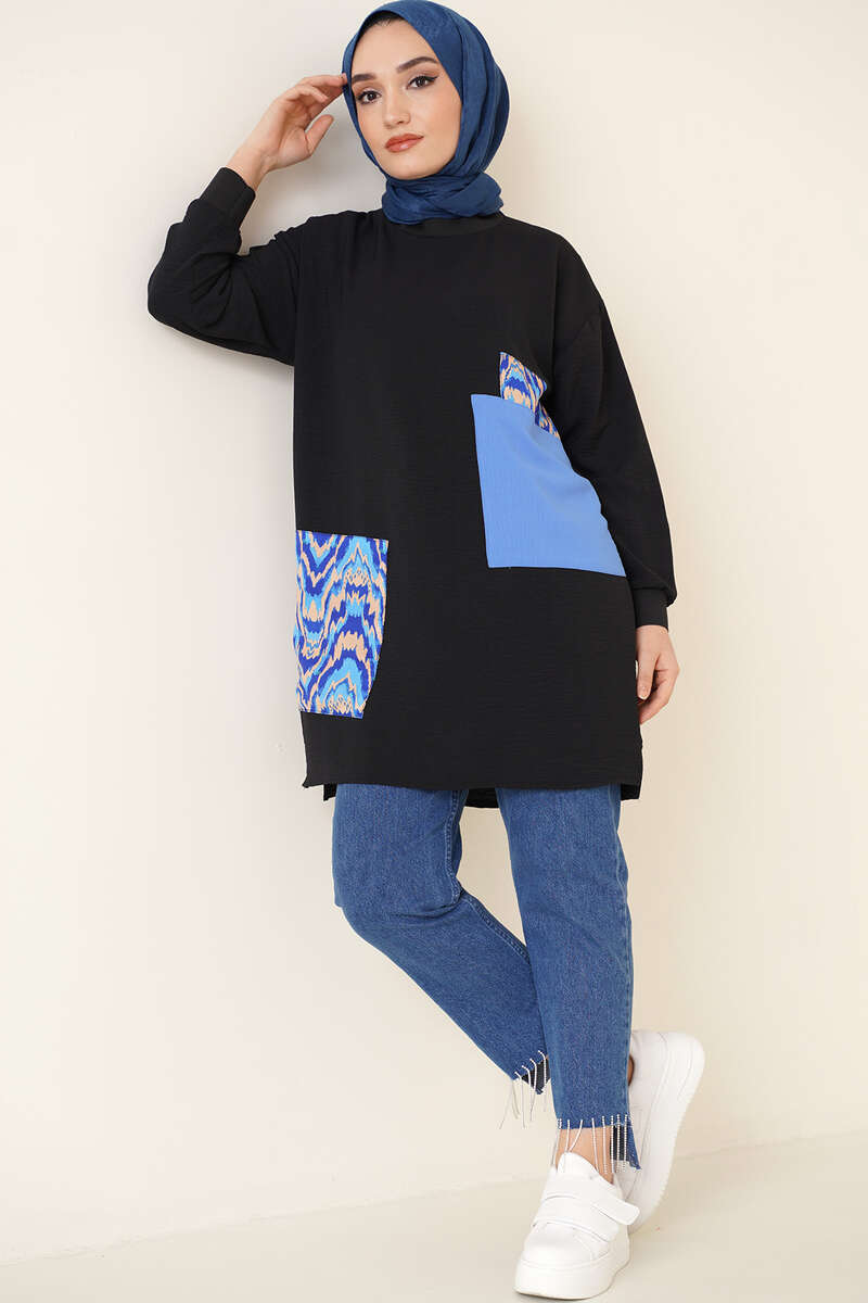 Yeni sezon tuniğimiz oversize kalıbıyla rahat bir seçimdir. Desenli garnili detayı tuniğimize hareket ve renk katmaktadır. Sezon boyunca tercih edeceğiniz tuniğimiz kolaylıkla kombinleyebilirsiniz. Düşük omuz moel olan tunik bisiklet yakadır.