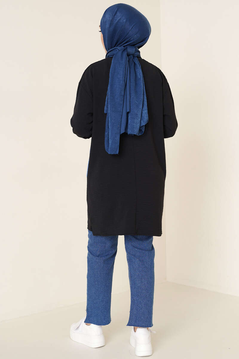Baklava Kabartma Yumoş Triko Tunik Siyah