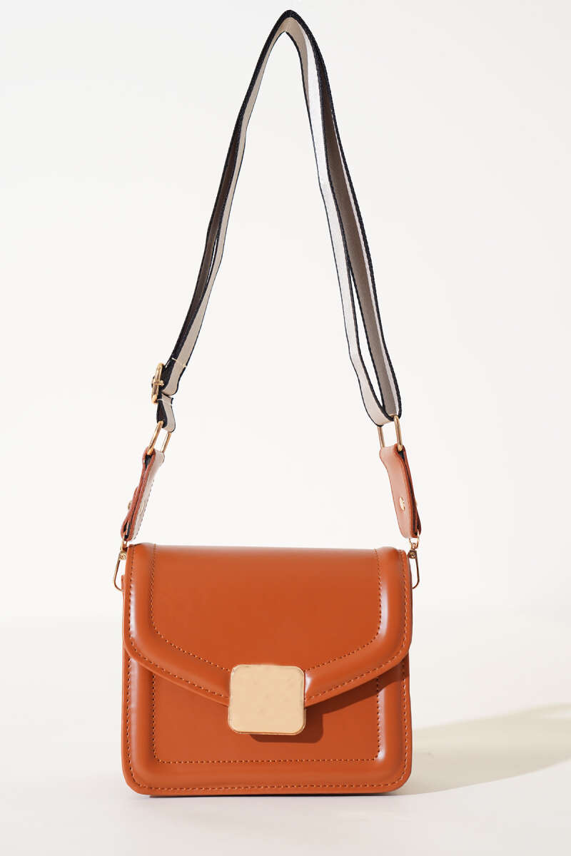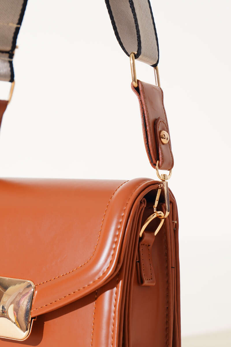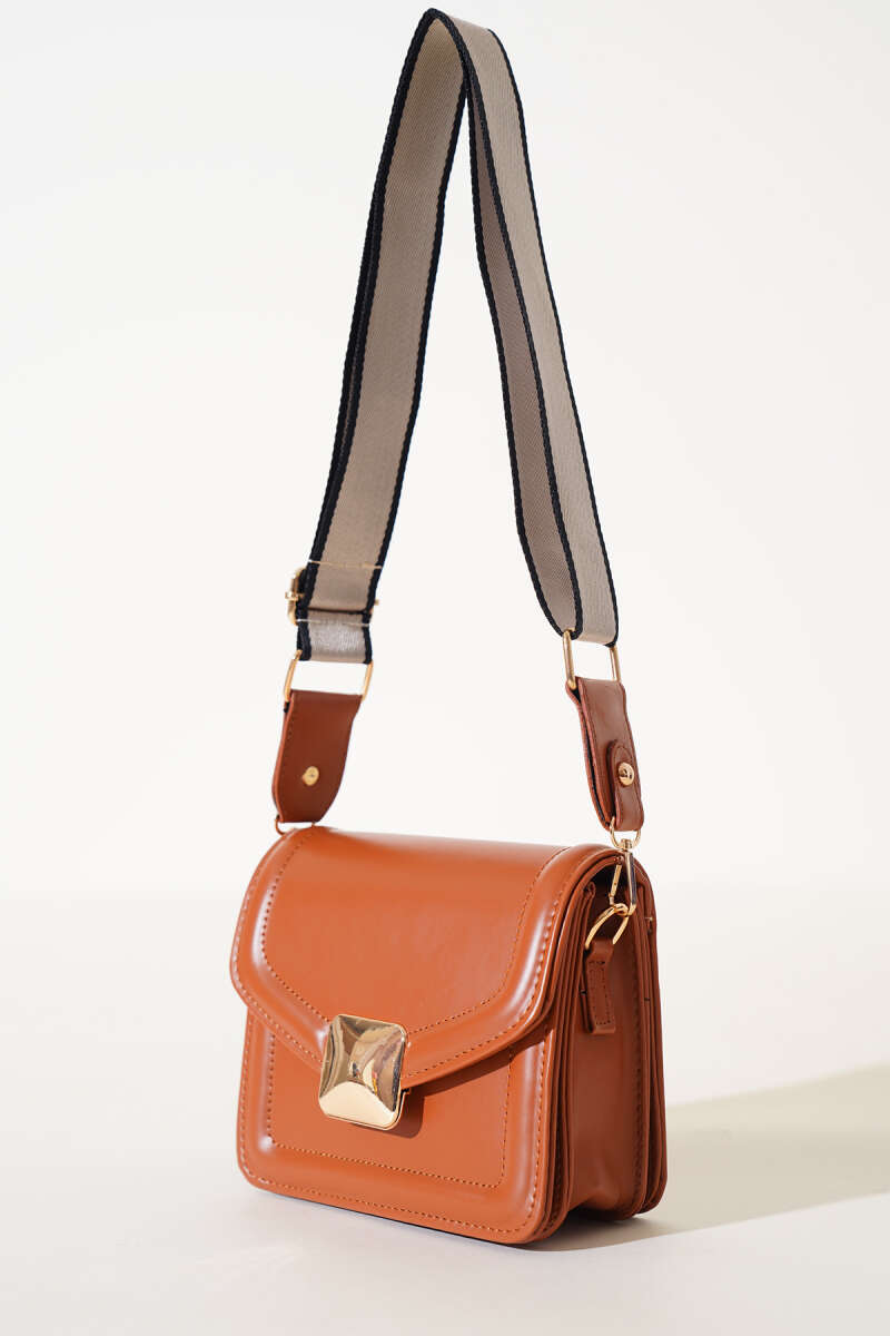 Kare Gold Detaylı Kol Çantası Taba
