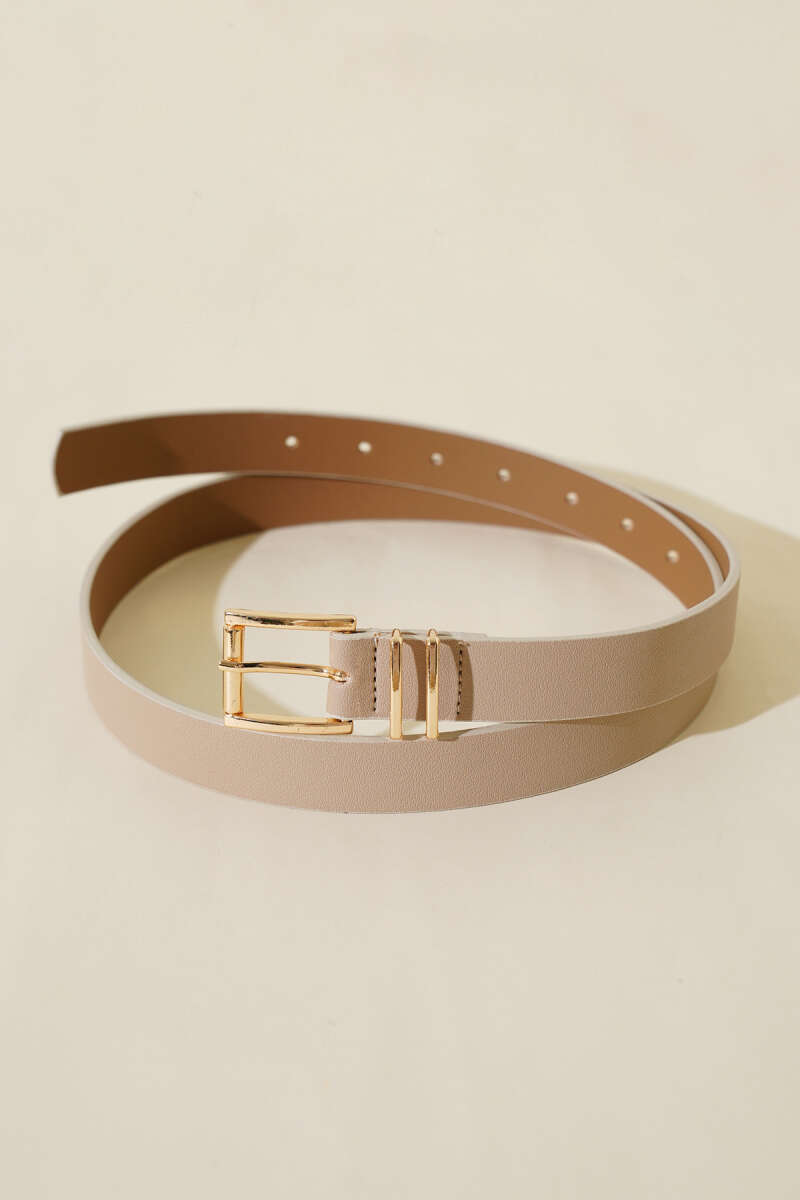 Metal Dikdörtgen Tokalı İnce Kemer Taba
