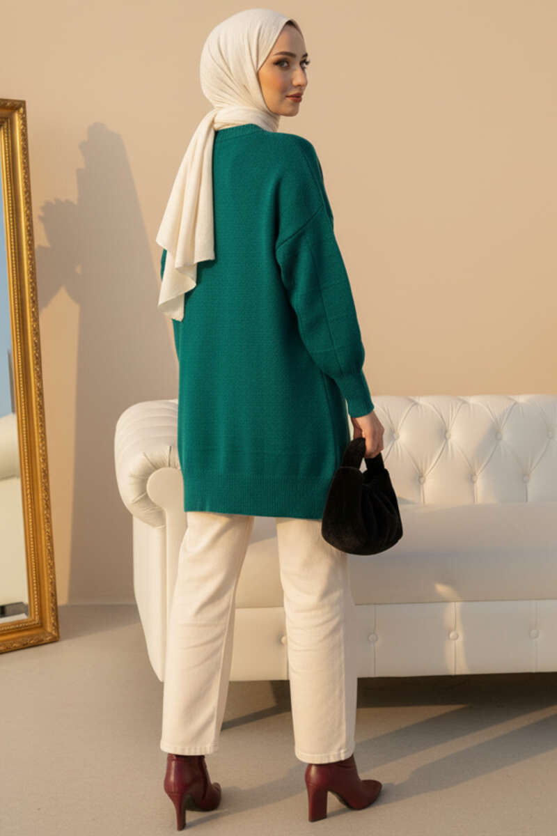 Düşük Omuz Detaylı Triko Tunik Yeşil