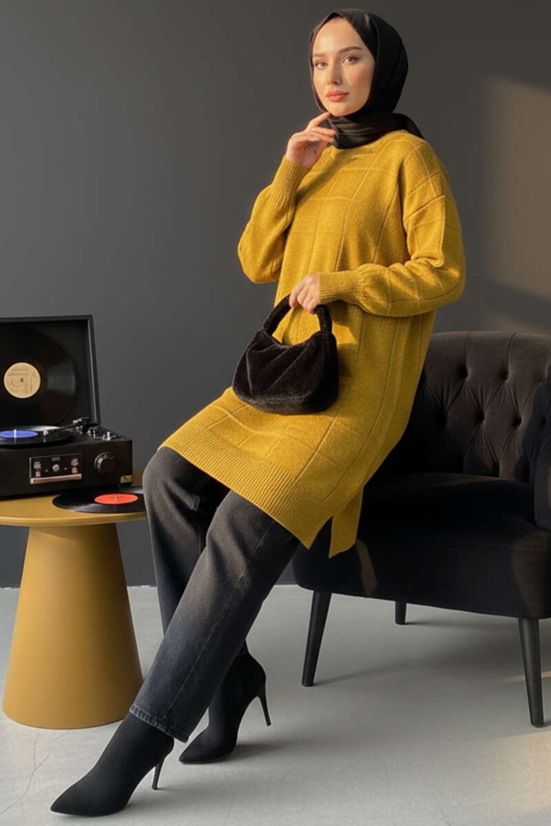Kare Kabartmalı Yumoş Triko Tunik Nefti