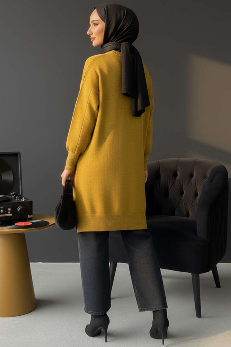 Düşük Omuz Detaylı Triko Tunik Sarı