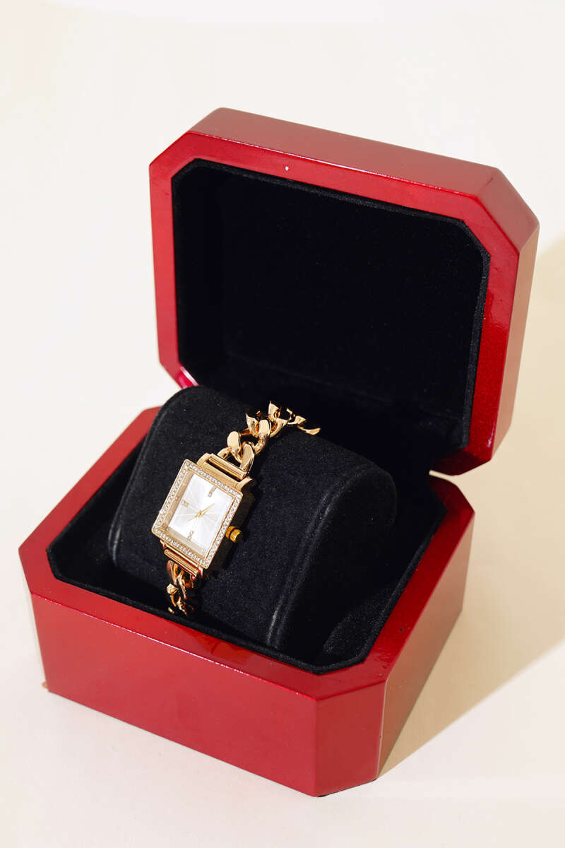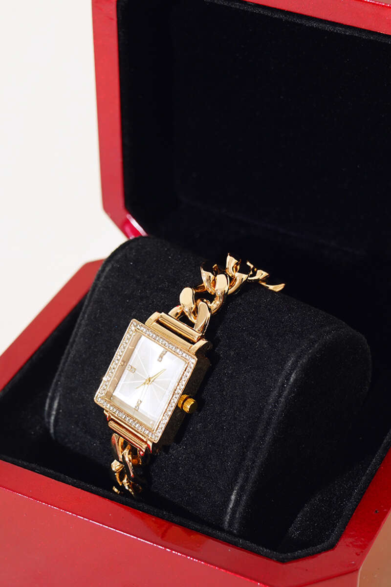 Kare Taş Süslemeli Kadın Kol Saati Gold