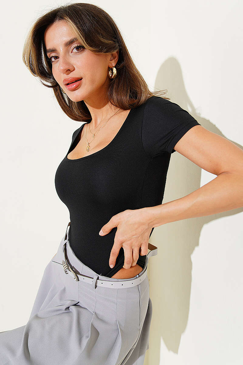 Kare Yaka Çıtçıtlı Zıbın Body Siyah
