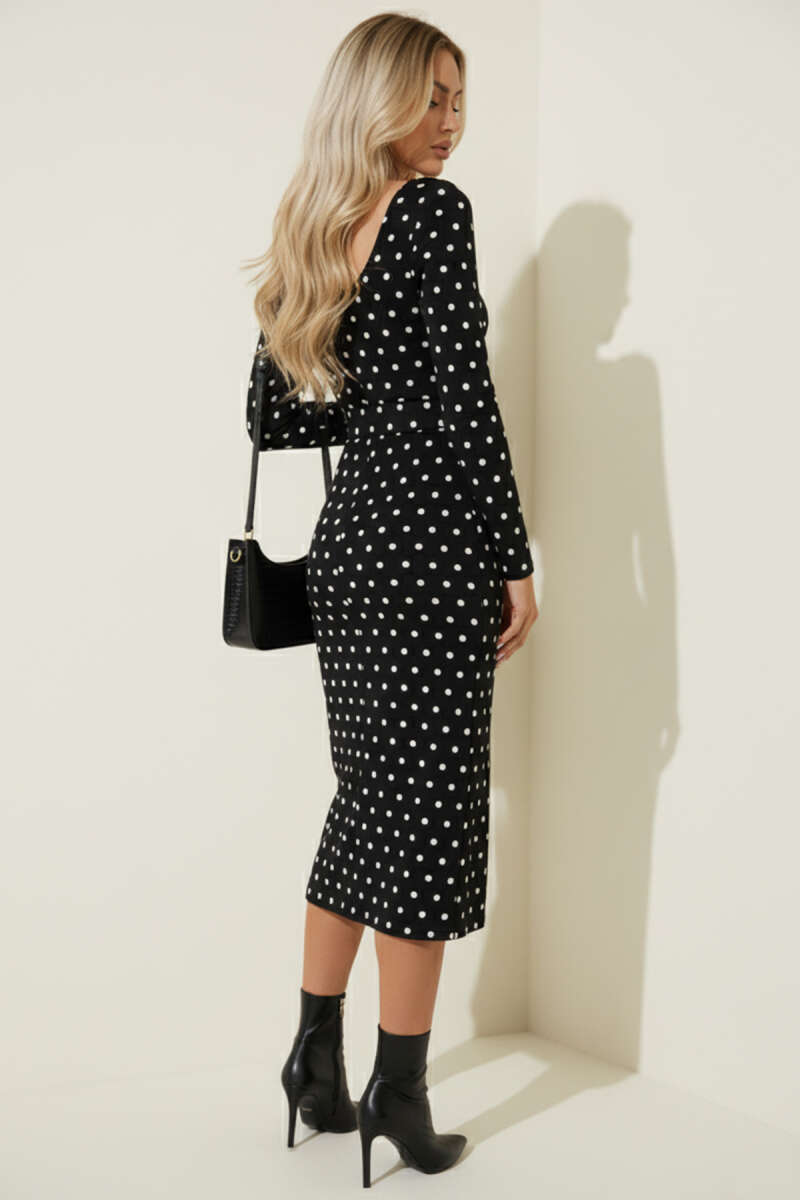 Kruvaze Yaka Düğmeli Triko İkili Takım Siyah