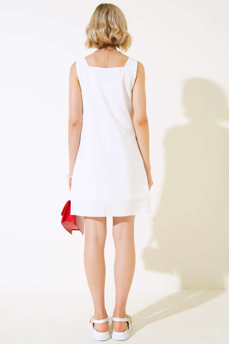 Nakışlı Kemerli Elbise Beyaz