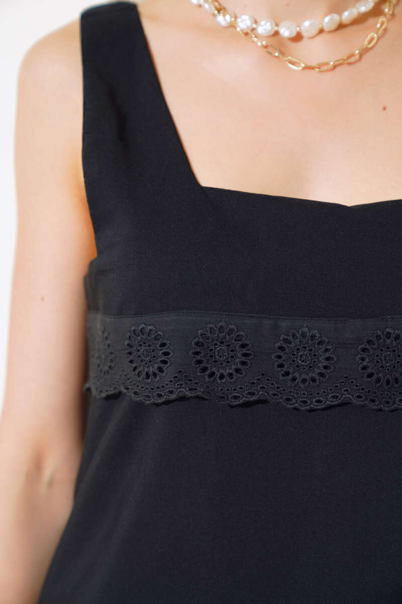 Pötikareli Yanları Büzgü Detay Siyah Tunik
