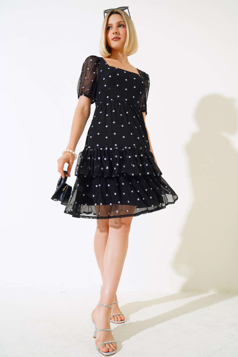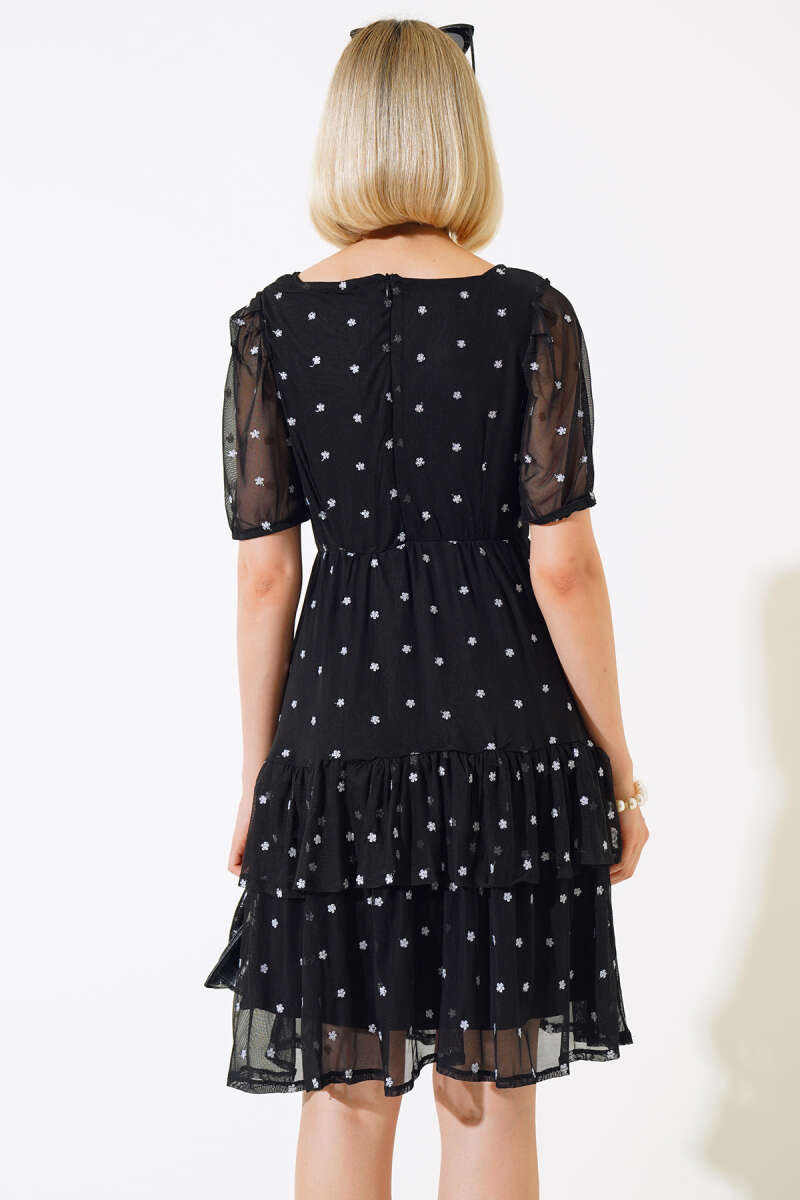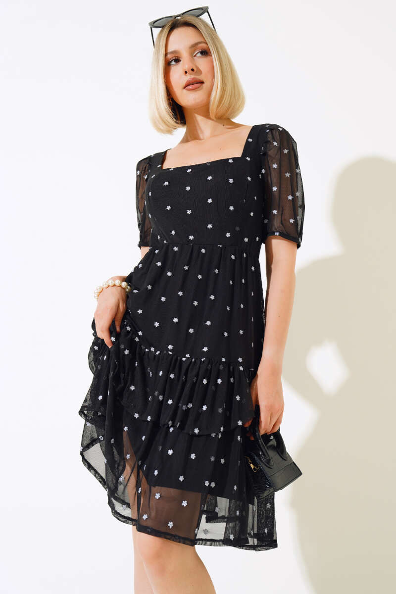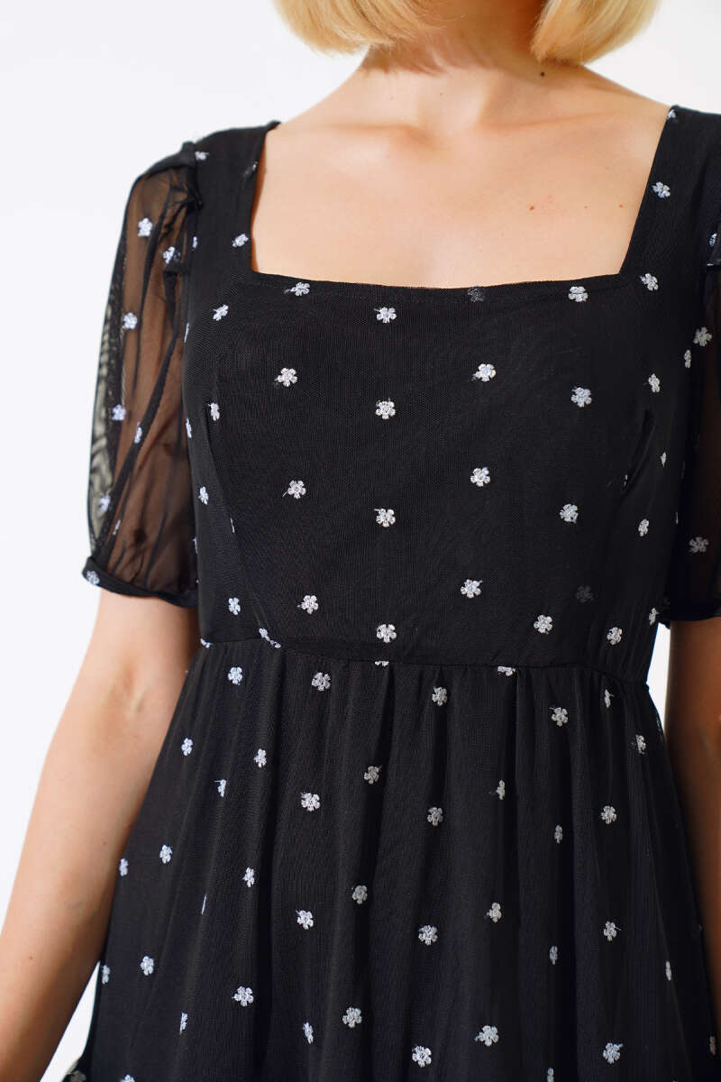 Çiçek Detaylı Yumoş Triko Tunik Lacivert