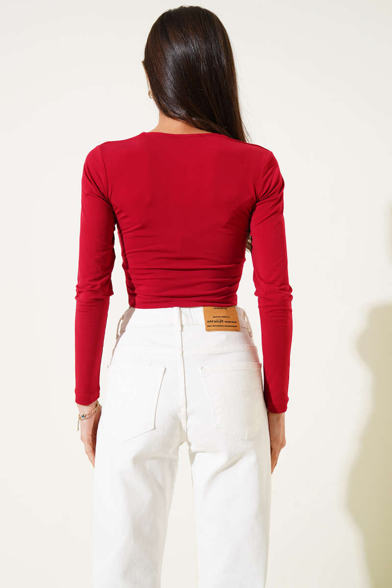 İp Bağlamalı Duble Kol Triko Tunik Bordo