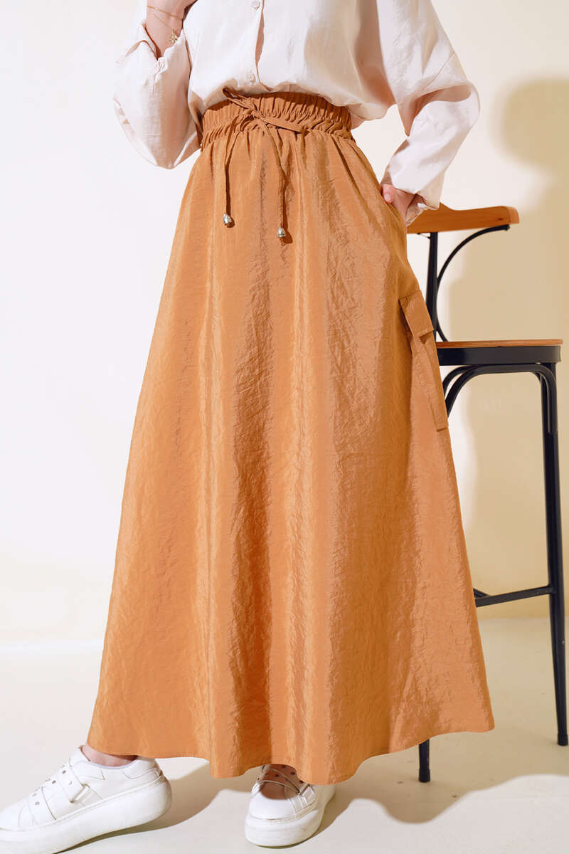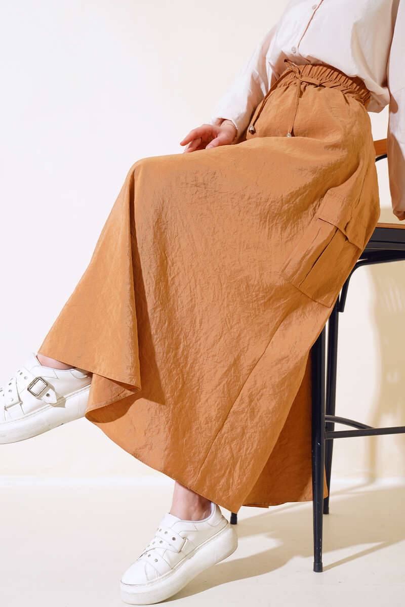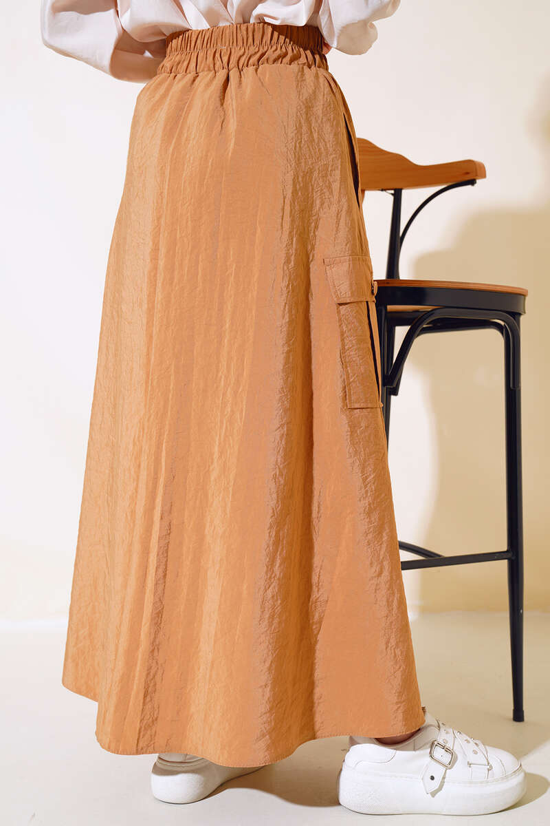 Yeni sezon etek modelimiz size çok yakışacak. İki adet düğmeli kapaklı kargo cep bulunmaktadır. Kloş modeldir. Belden lastiklidir. İçi astarlıdır. İki adet yan cebi bulunmaktadır. Eteğimizin renk seçenekleri mevcuttur.
