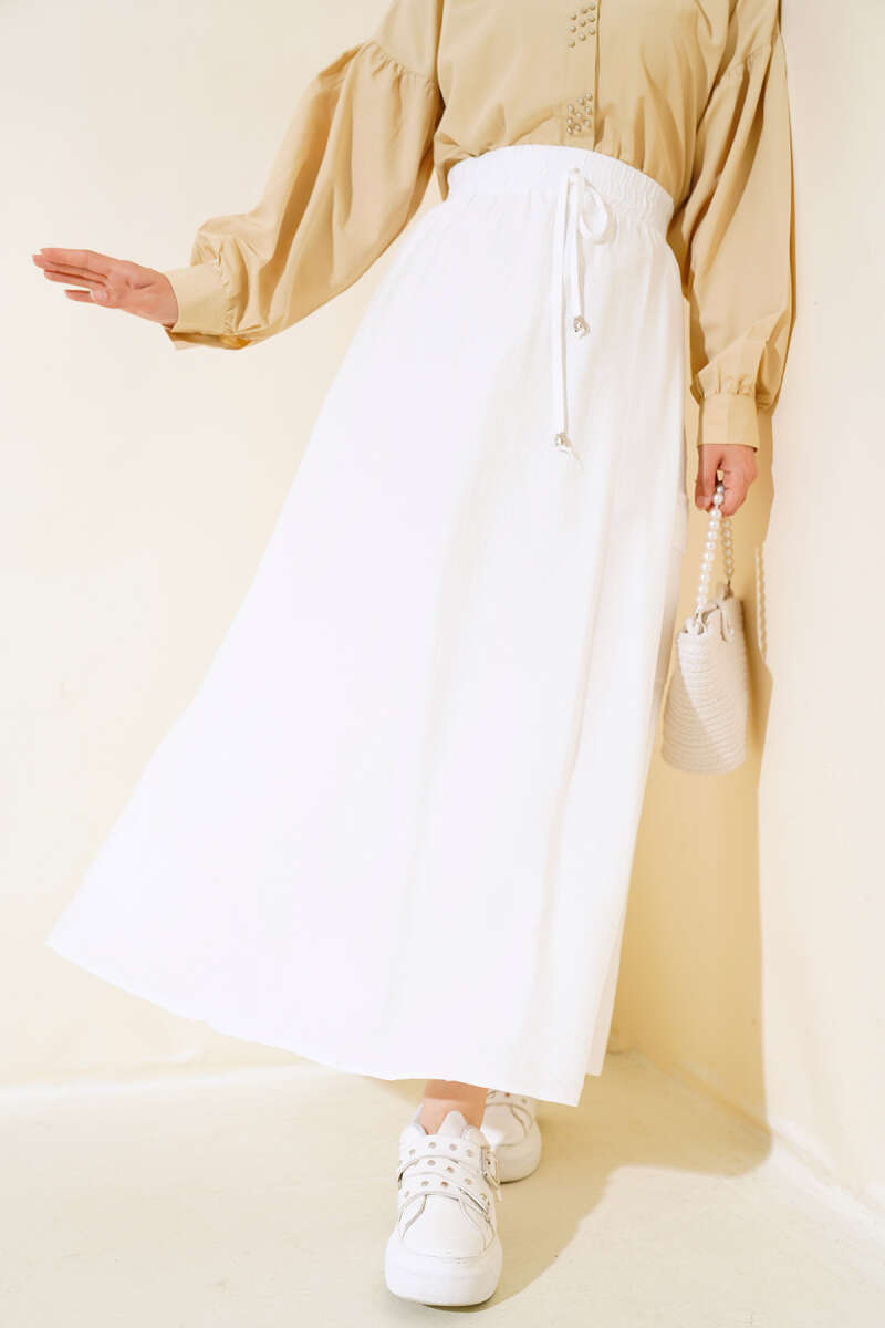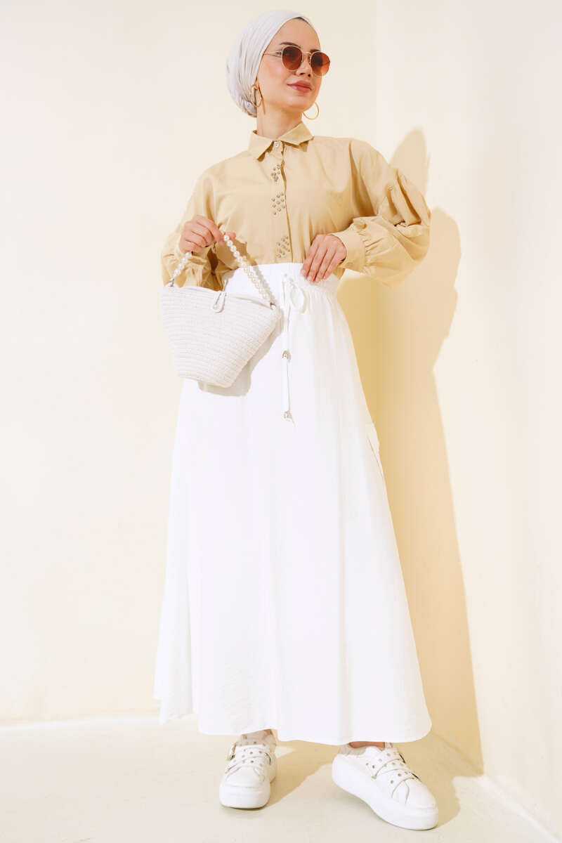 Kemer Aksesuarlı Ekoseli Etek Haki
