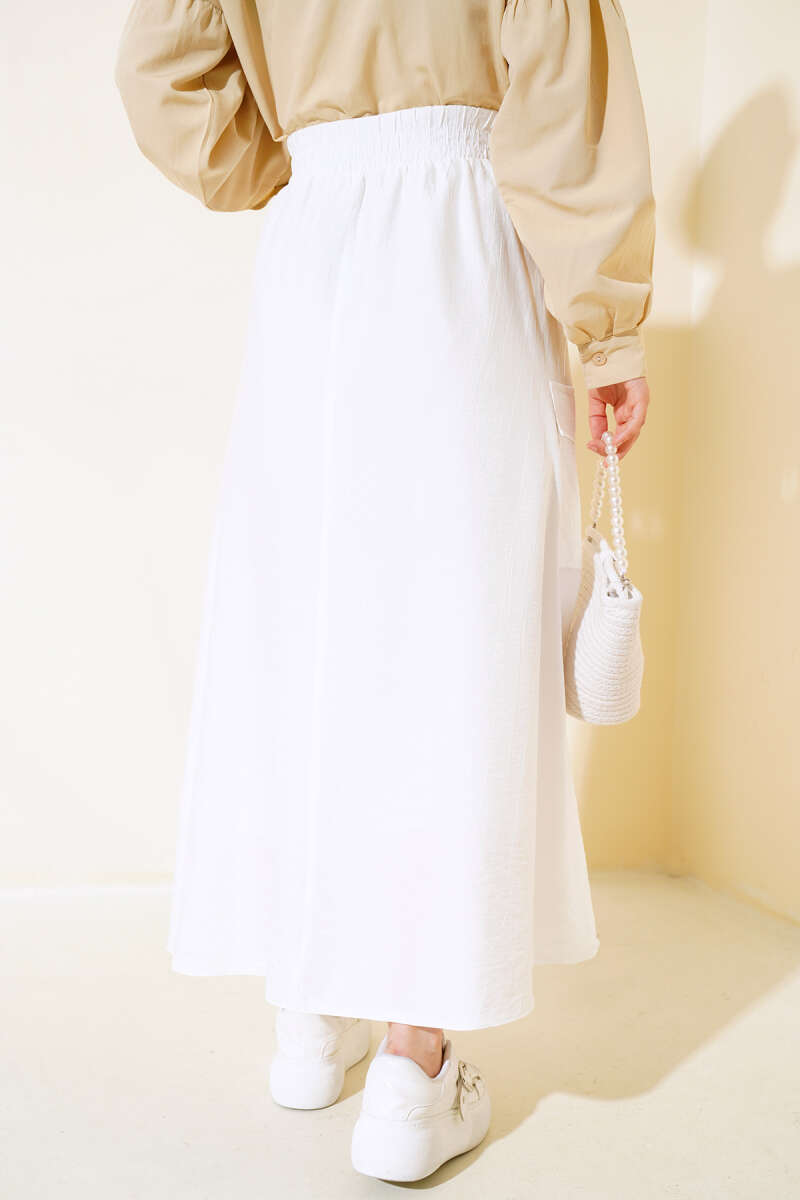 Ekose Desenli Düğmeli Kloş Etek Haki