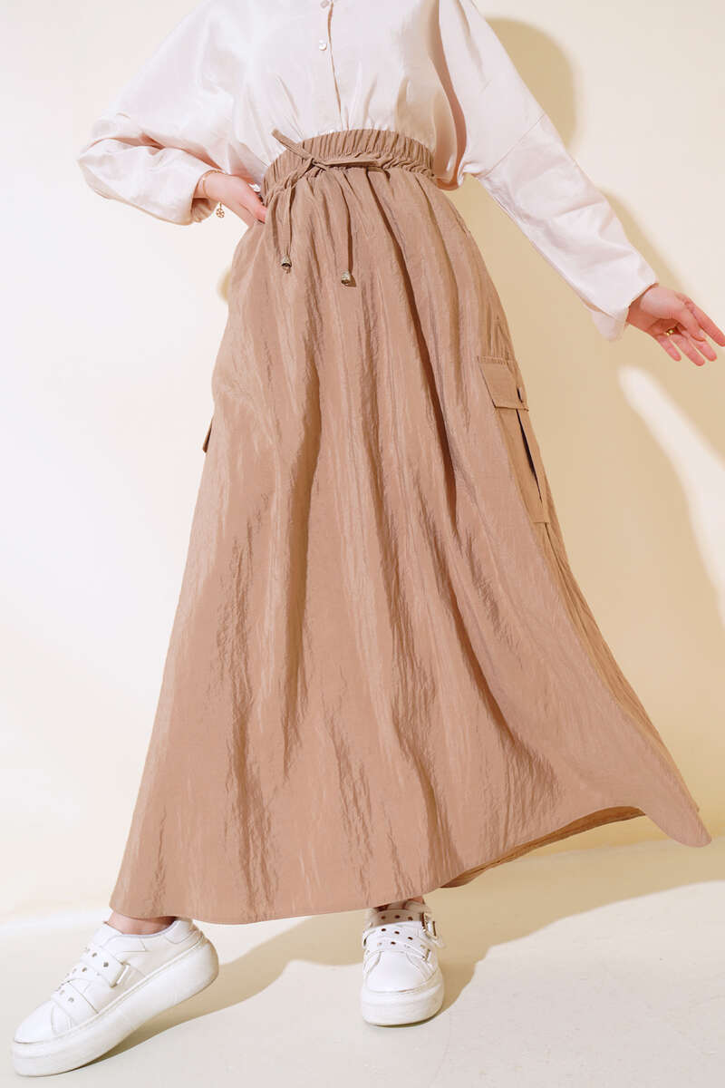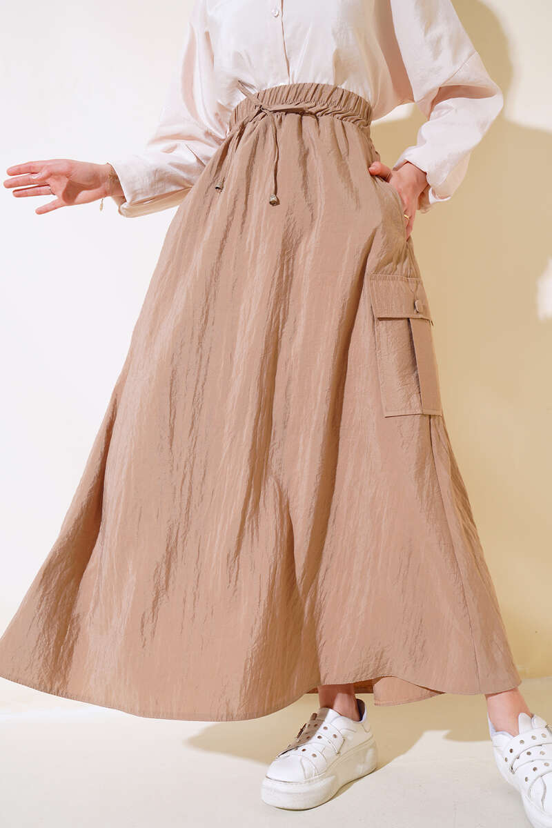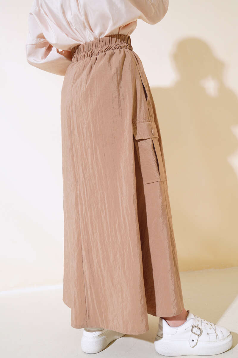 Yeni sezon etek modelimiz size çok yakışacak. İki adet düğmeli kapaklı kargo cep bulunmaktadır. Kloş modeldir. Belden lastiklidir. İçi astarlıdır. İki adet yan cebi bulunmaktadır. Eteğimizin renk seçenekleri mevcuttur.