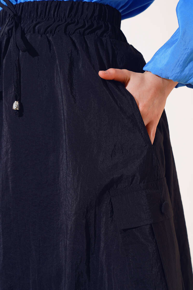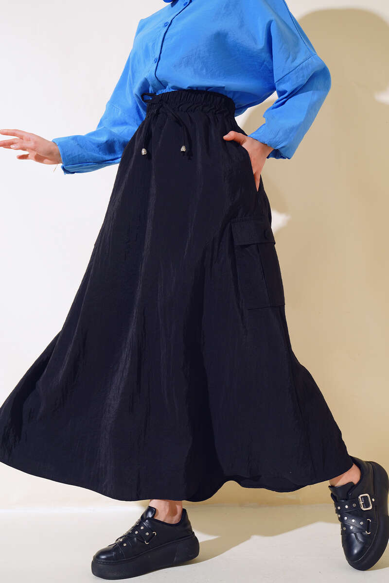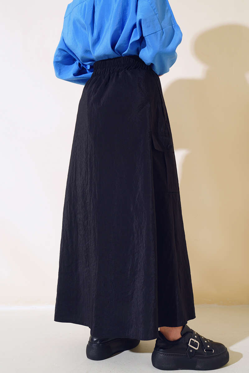 Yeni sezon etek modelimiz size çok yakışacak. İki adet düğmeli kapaklı kargo cep bulunmaktadır. Kloş modeldir. Belden lastiklidir. İçi astarlıdır. İki adet yan cebi bulunmaktadır. Eteğimizin renk seçenekleri mevcuttur.