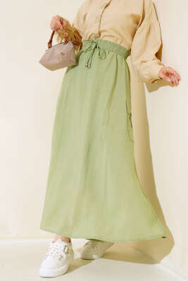 Kemer Aksesuarlı Ekoseli Etek Haki