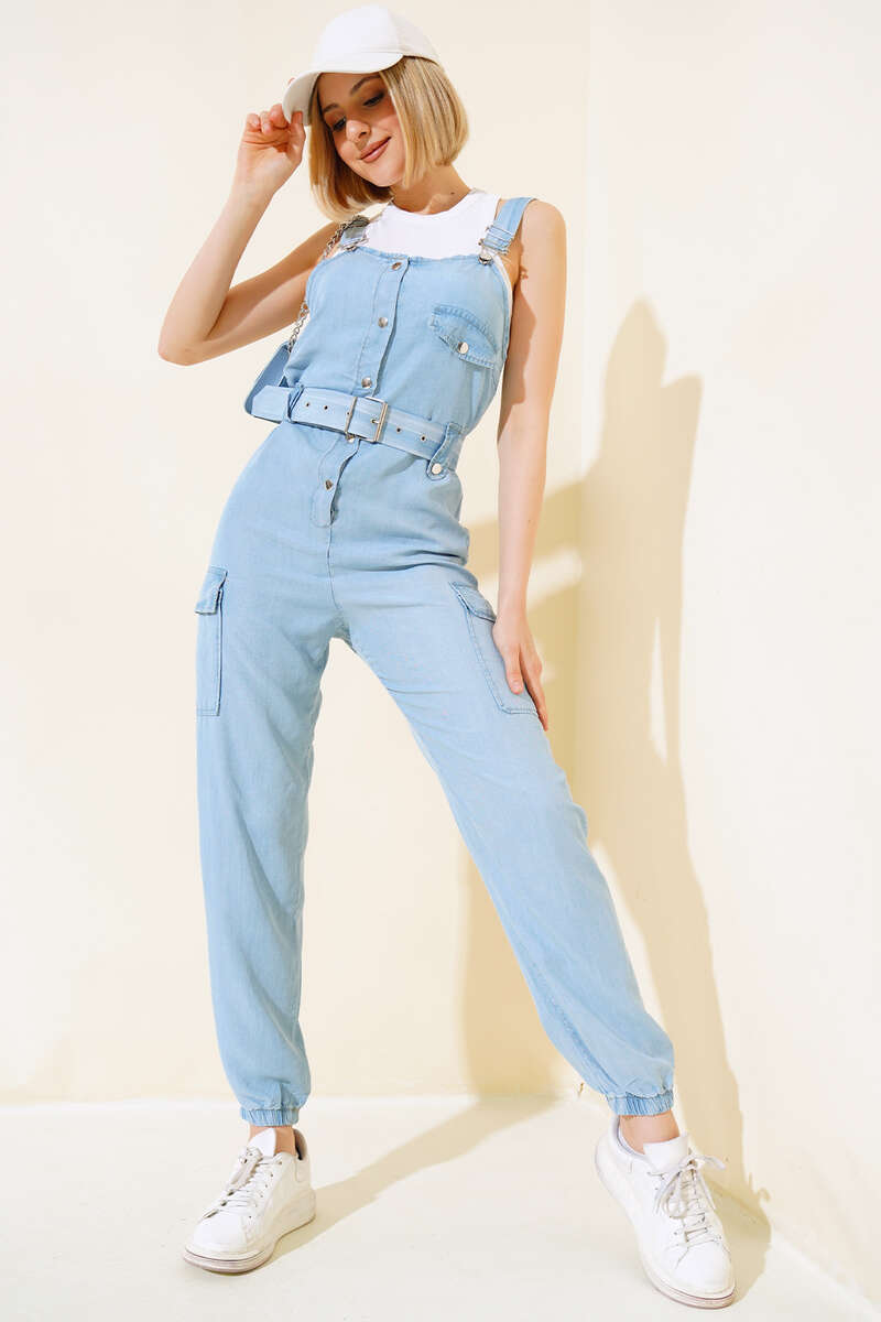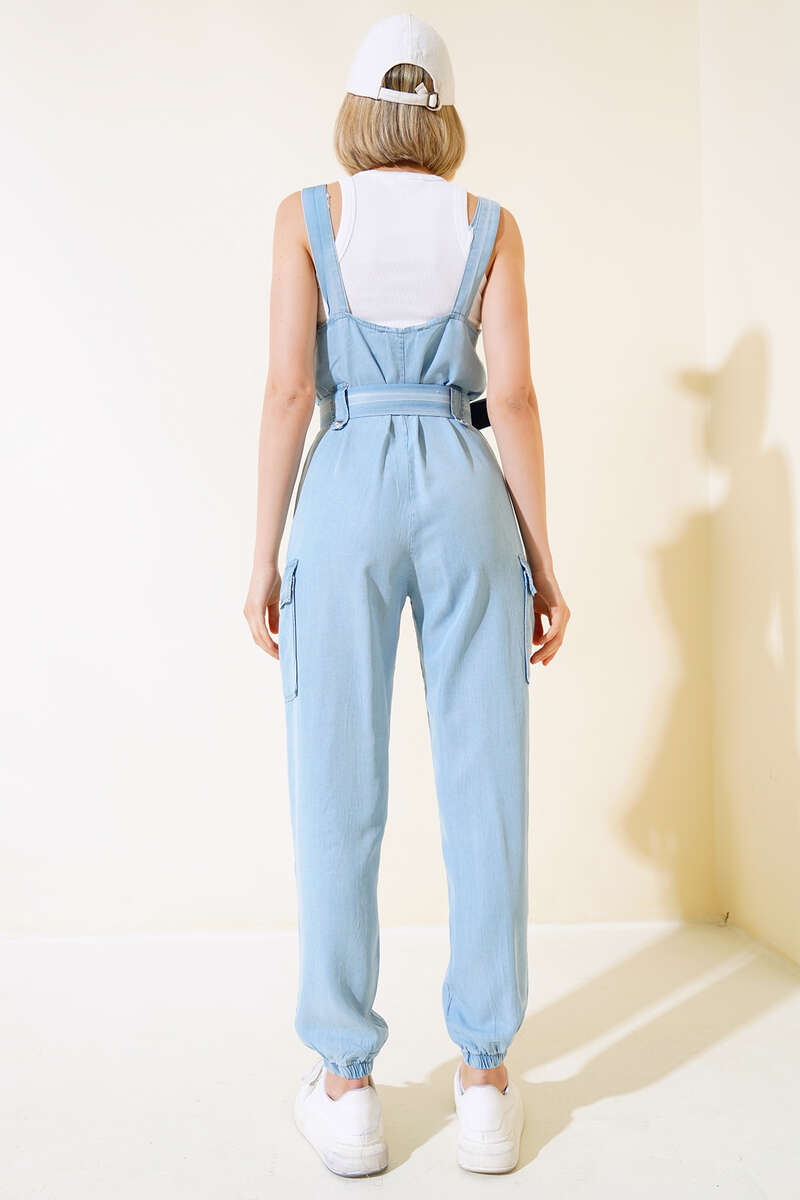 Kargo Cepli Askılı Tulum Açık Mavi