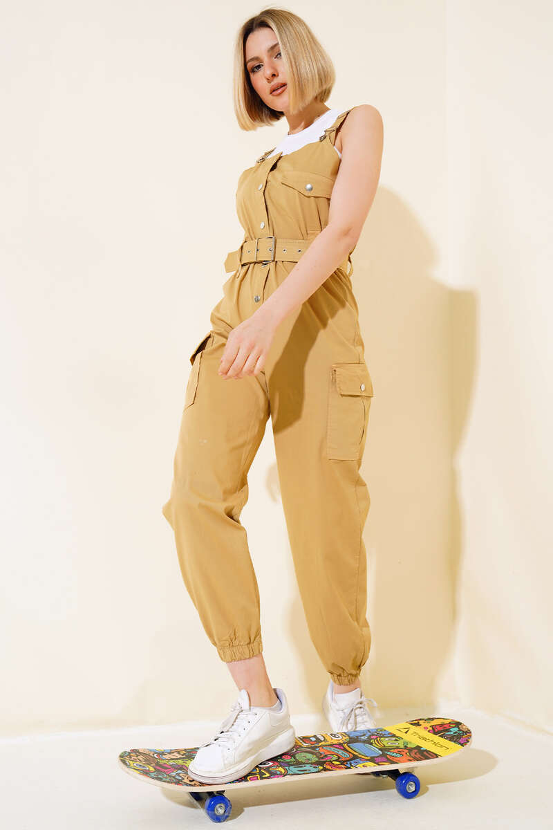 Yeni sezon tulum modelimiz sizlerle beraber. Tulumumuz ayarlanabilir kalın askılıdır. Önü yarım düğmelidir. Paçası lastiklidir. Tulumumuzun kargo cebi bulunmaktadır. Beş adet kemer köprüsü lup, bir adet kemeri bulunmaktadır. Şık ve sportif tulumumuz sizleri bekliyor. Renk seçeneklerimiz mevcuttur.