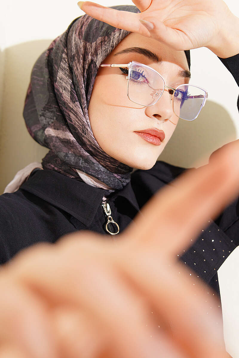 Karışık Desen Bambu Kraş Ayda Eşarp Gri