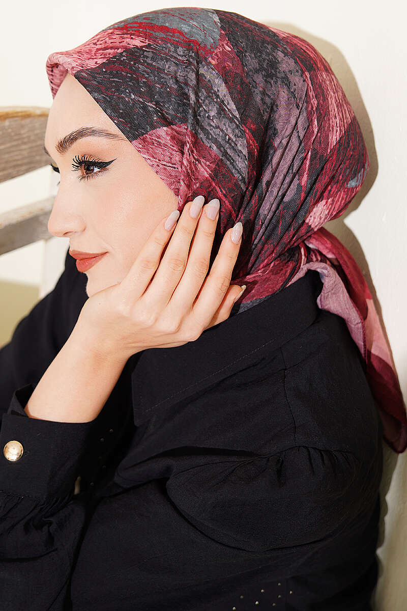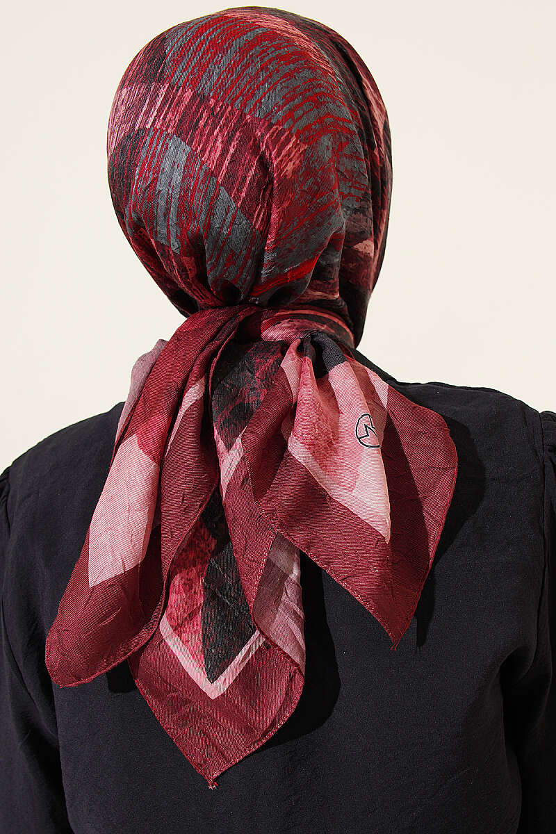 Karışık Desen Bambu Kraş Ayda Eşarp Bordo