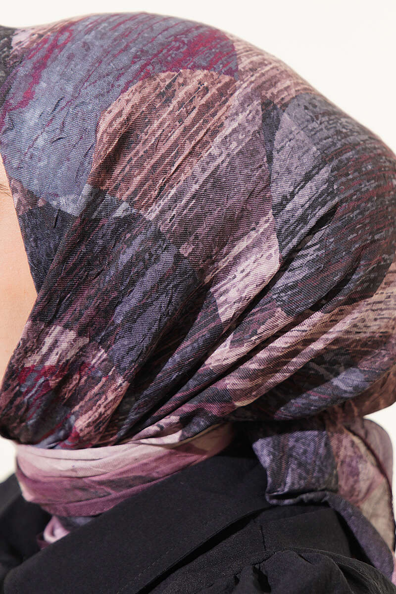 Karışık Desen Bambu Kraş Ayda Eşarp Burgonya