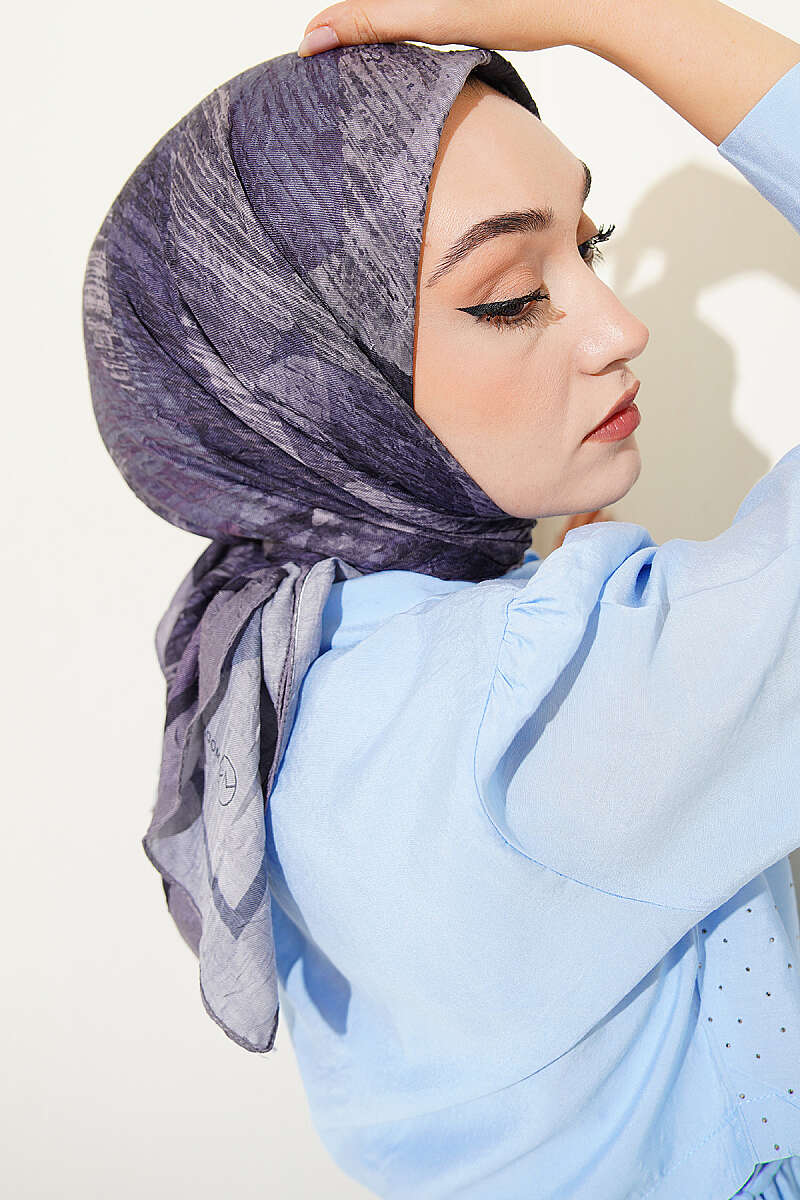 Karışık Desen Bambu Kraş Ayda Eşarp Gri