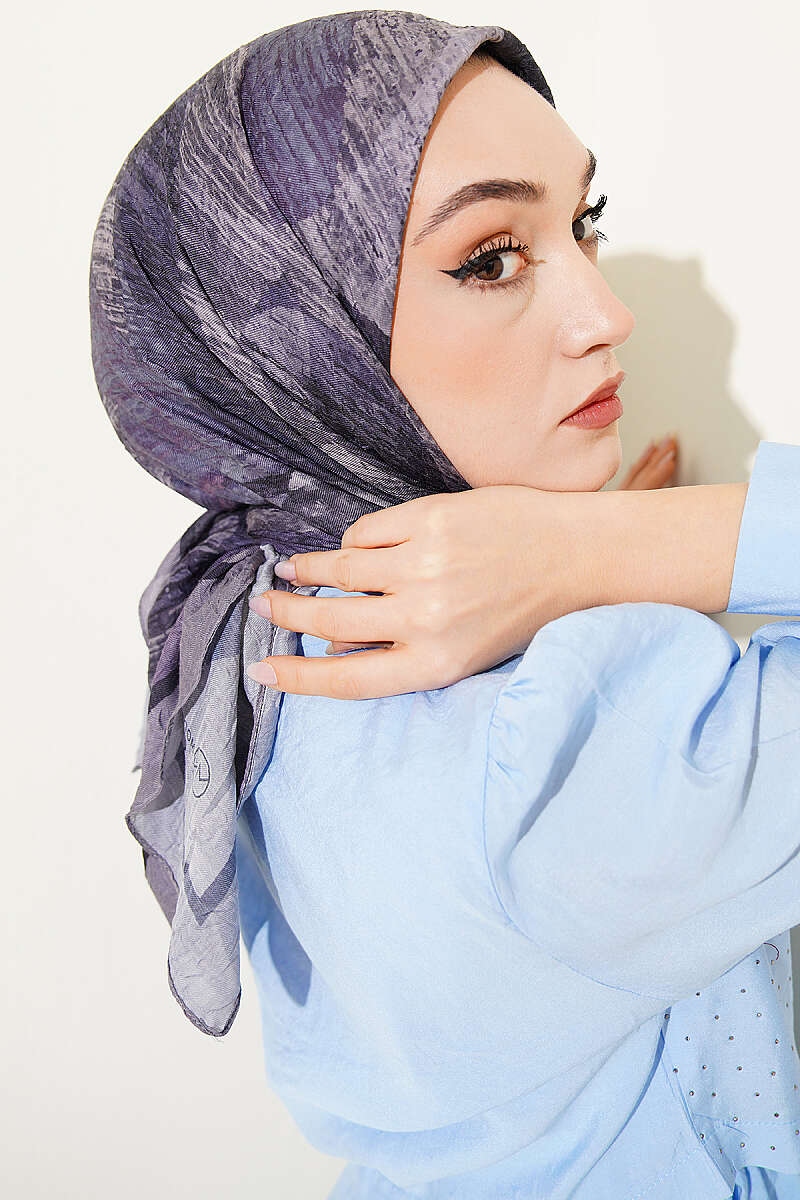 Karışık Desen Bambu Kraş Ayda Eşarp Mavi