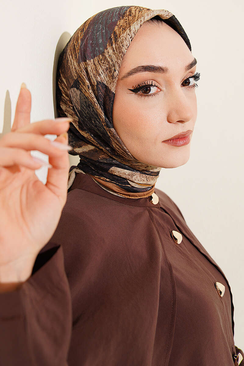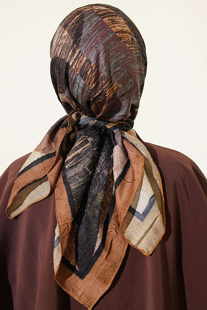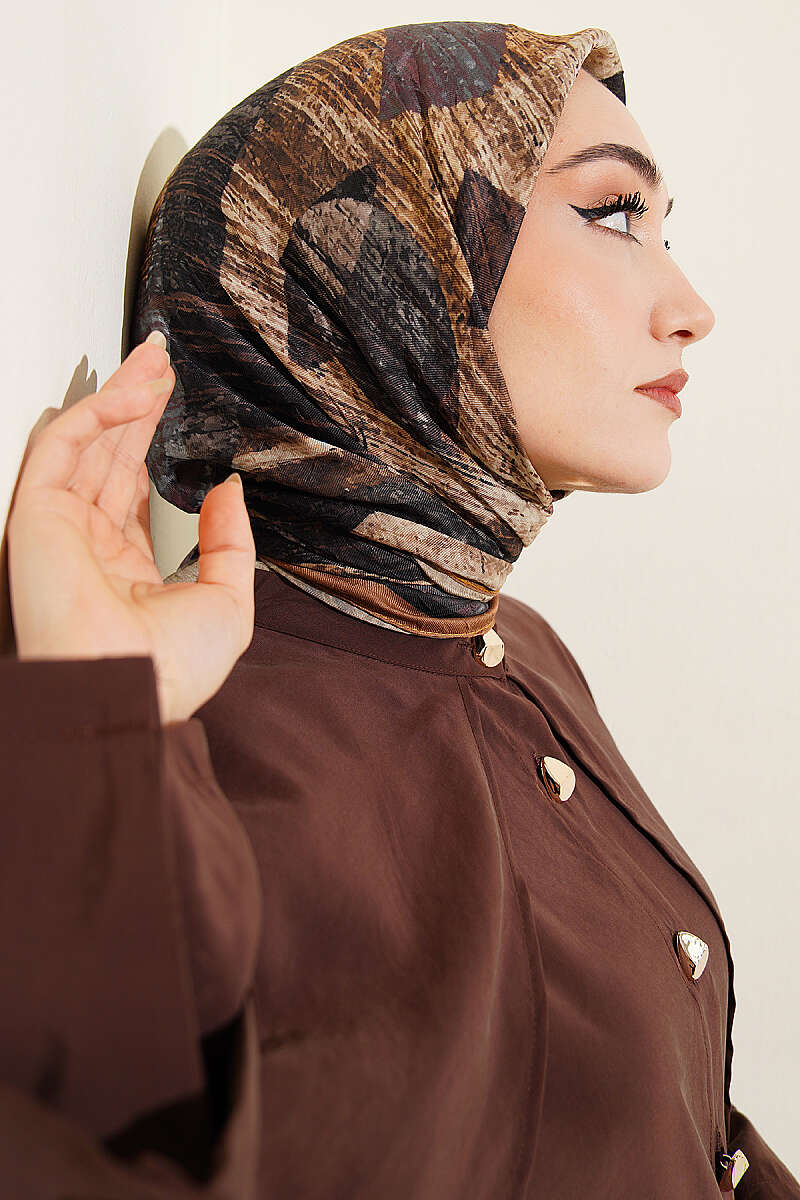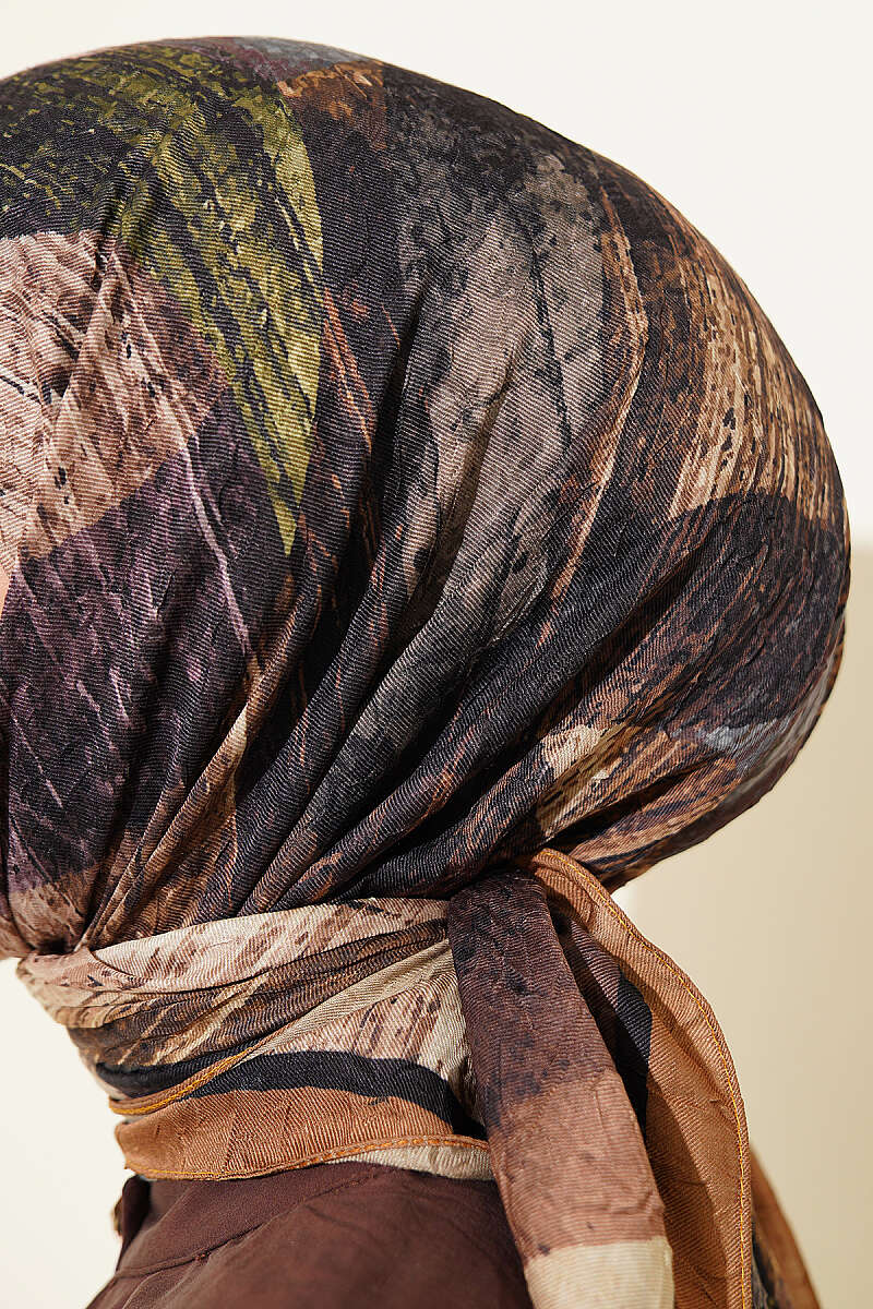Karışık Desen Bambu Kraş Ayda Eşarp Kahve