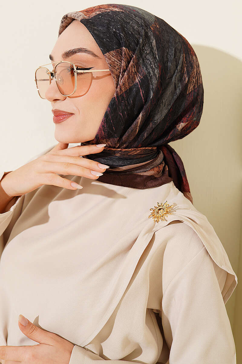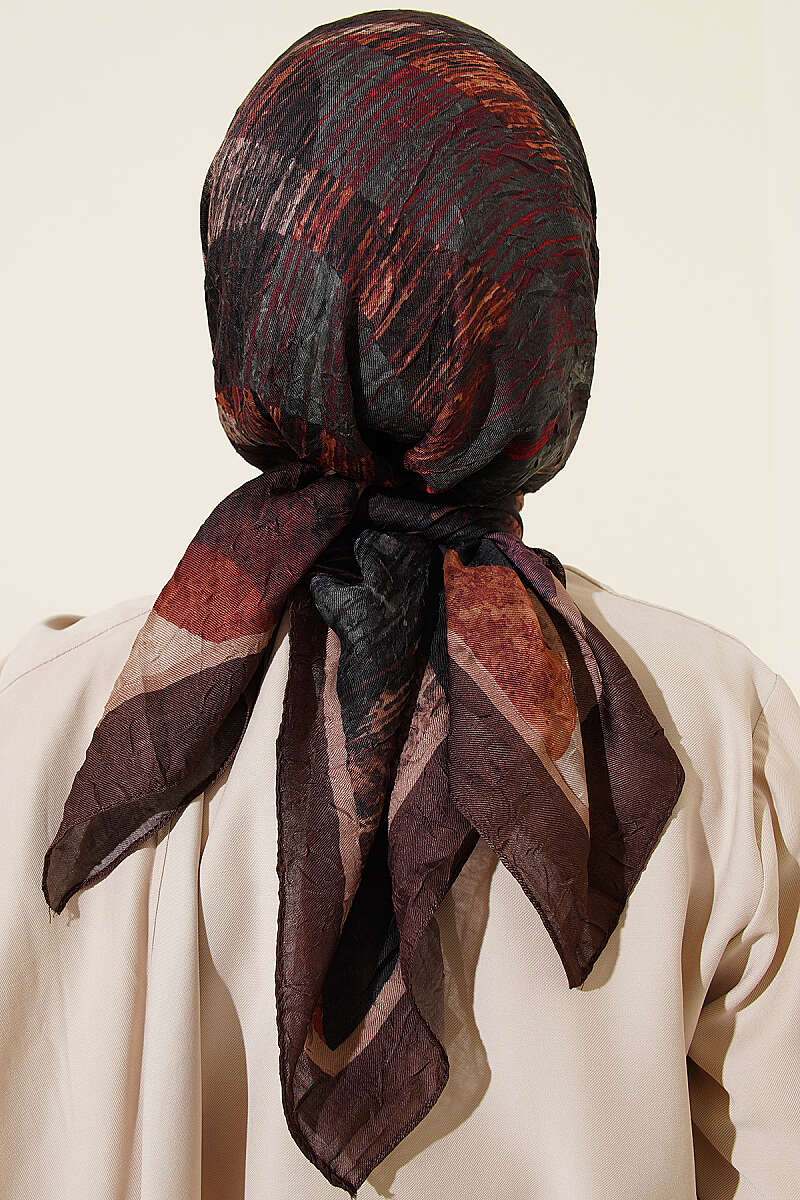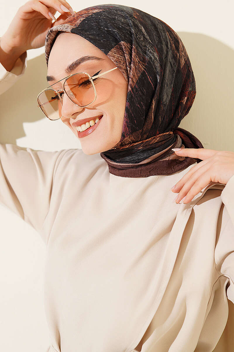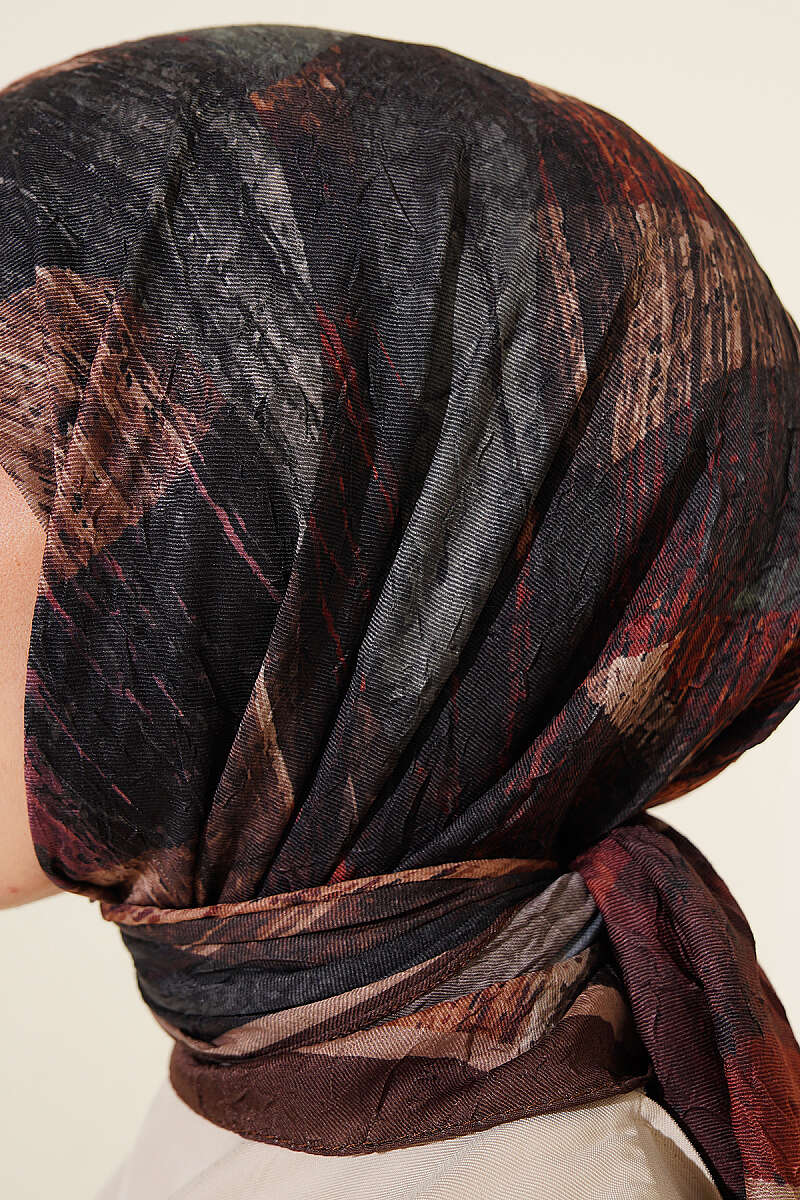 Karışık Desen Bambu Kraş Ayda Eşarp Kahve
